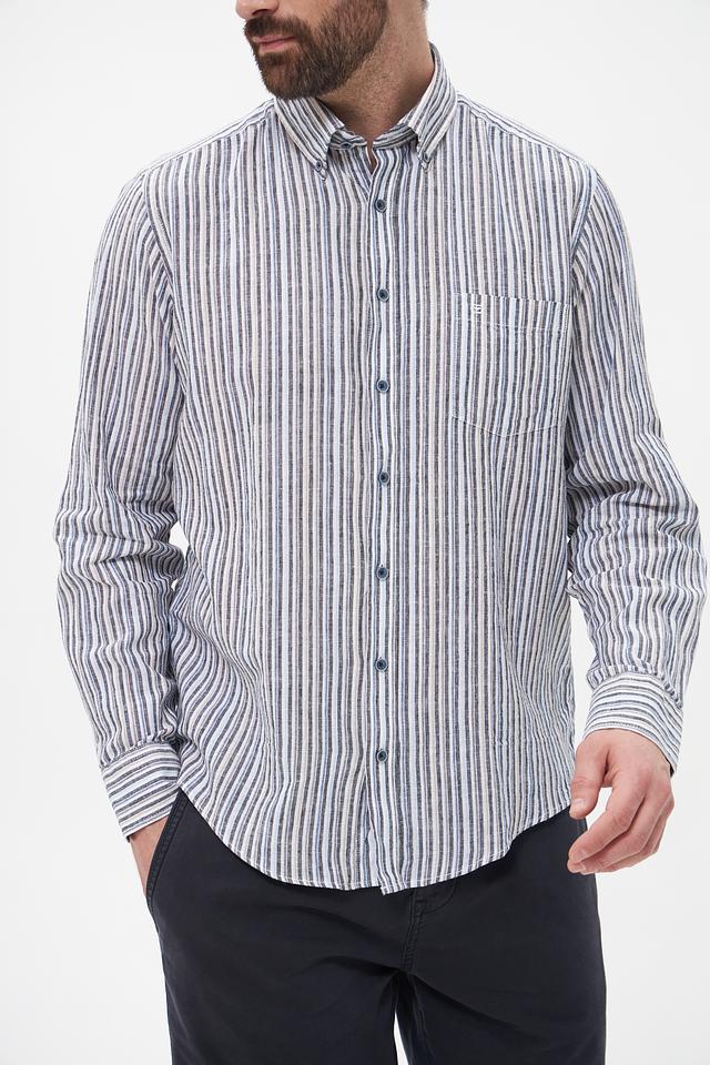 Мужская рубашка Casa Moda синего цвета в полоску – это стильное и комфортное решение для повседневного образа. Изготовлена из натуральных материалов, обеспечивающих приятные ощущения и воздухопроницаемость. Состав: лен 55%, хлопок 45%