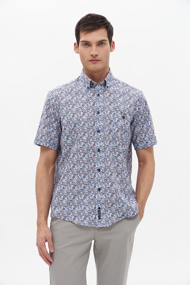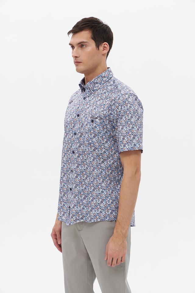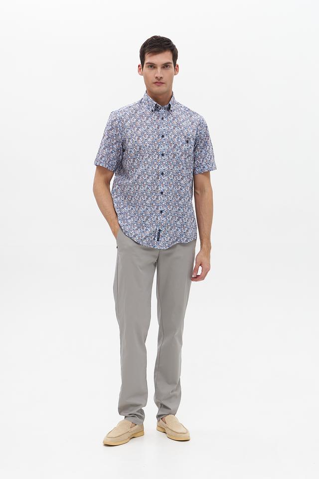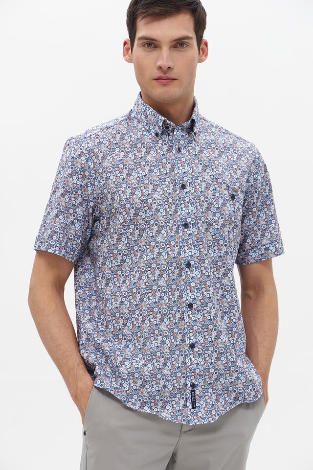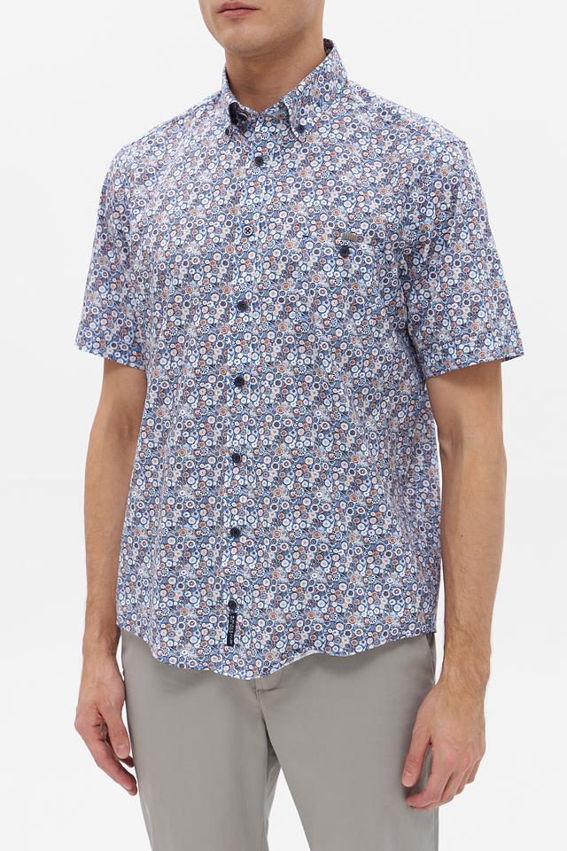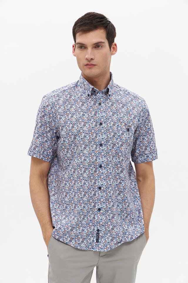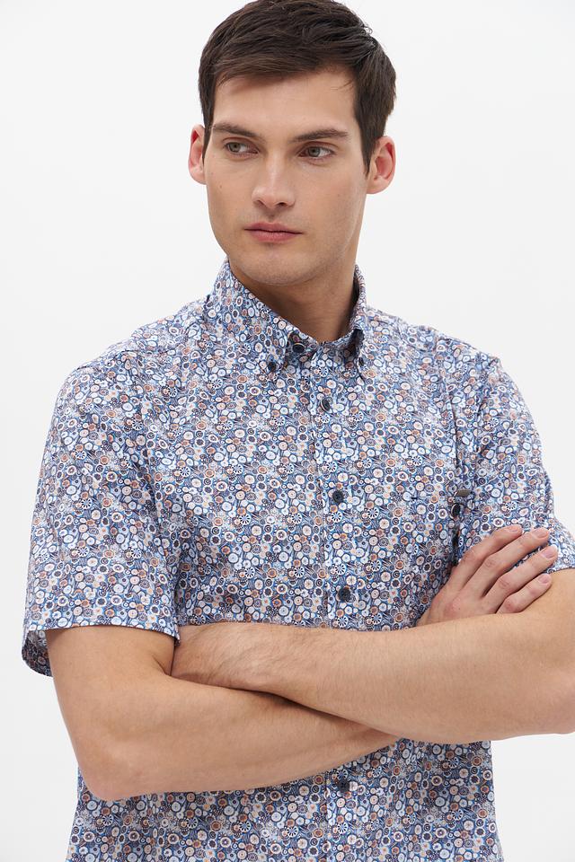 Мужская рубашка Casa Moda голубого цвета с коротким рукавом и оригинальным цветочным принтом. Изготовлена из 100% хлопка, обеспечивающего комфорт и воздухопроницаемость. Идеальный выбор для создания стильного и непринужденного образа. Состав: хлопок 100%