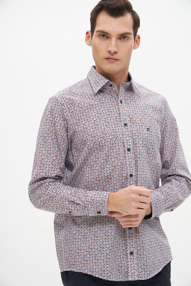 Эта рубашка от Casa Moda станет прекрасным дополнением к вашему гардеробу. Выполнена в светло-сером цвете и украшена мелким, многоцветным принтом, который придает ей особый шарм.