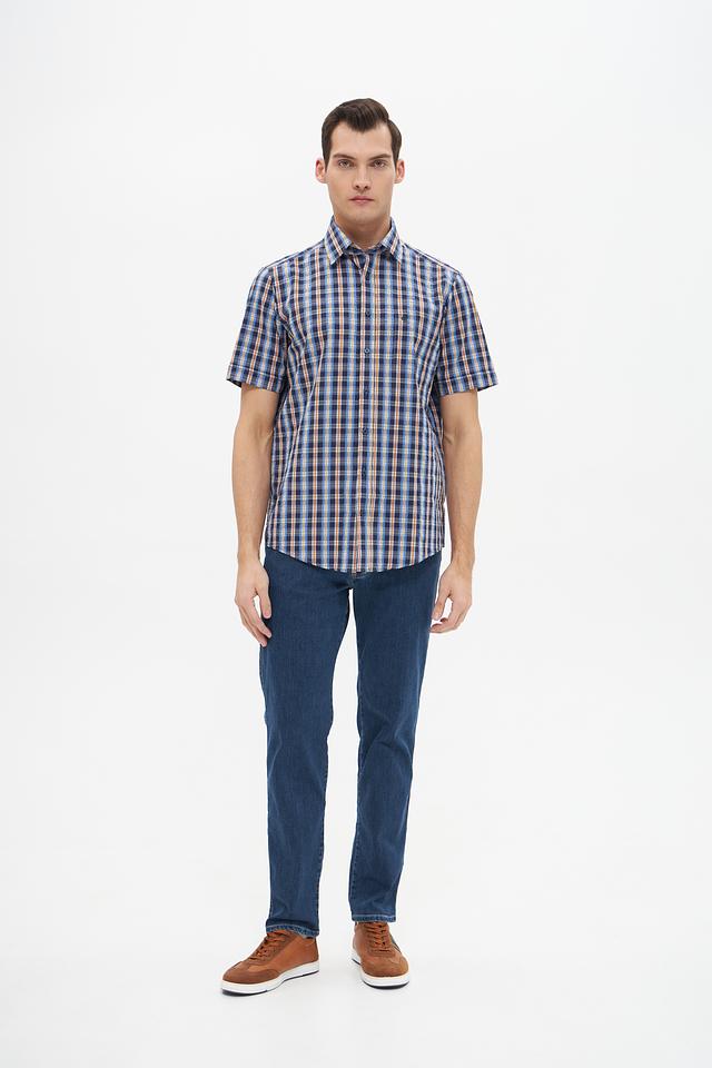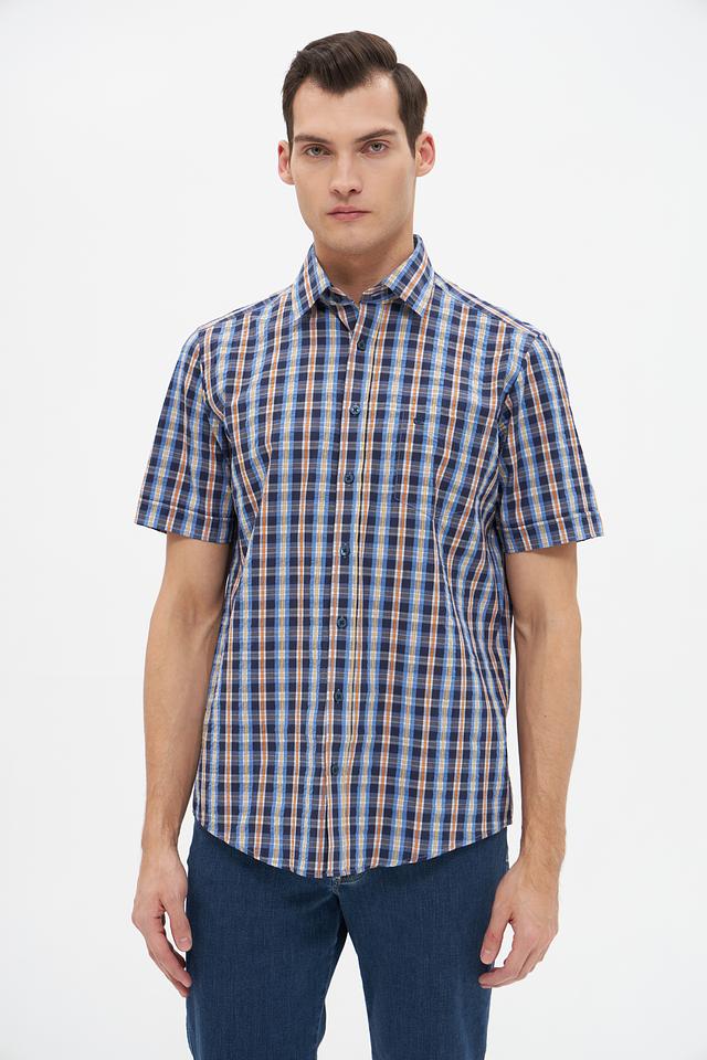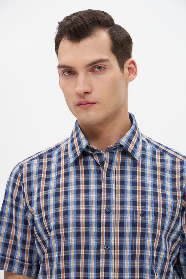 Мужская рубашка Casa Moda с коротким рукавом выполнена в классической клетке сине-горчичного цвета. Изготовлена из 100% хлопка, обеспечивающего комфорт и воздухопроницаемость. Состав: хлопок 100%