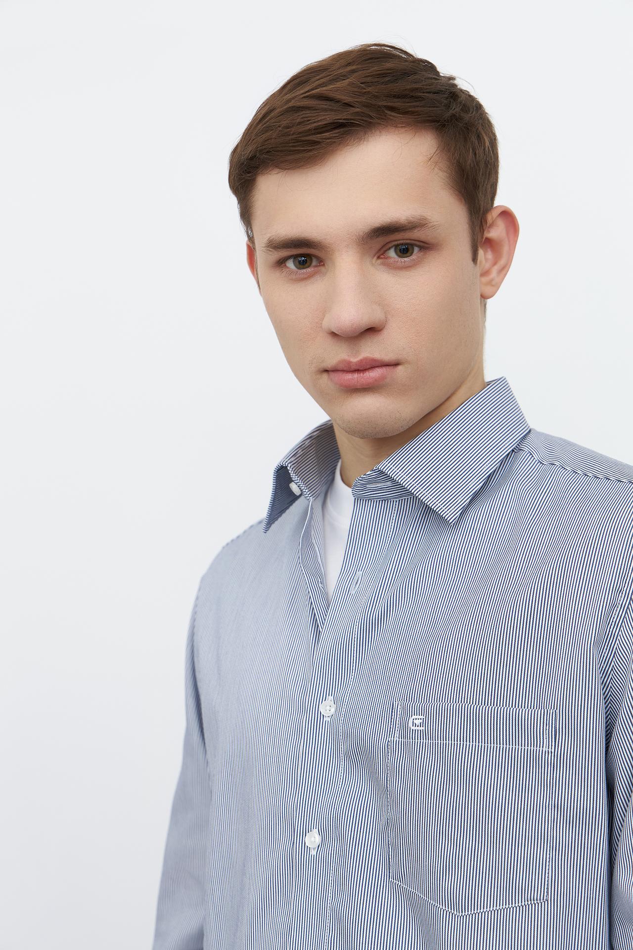 Рубашка Casa Moda синяя в полоску с карманом и логотипом
