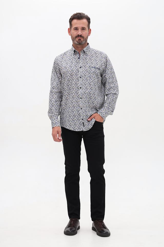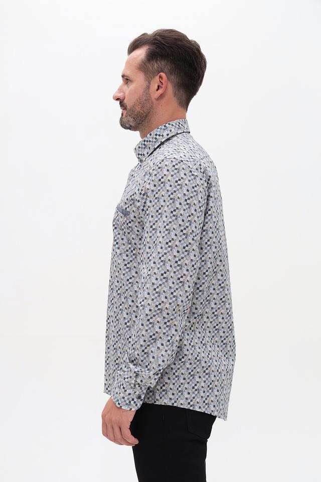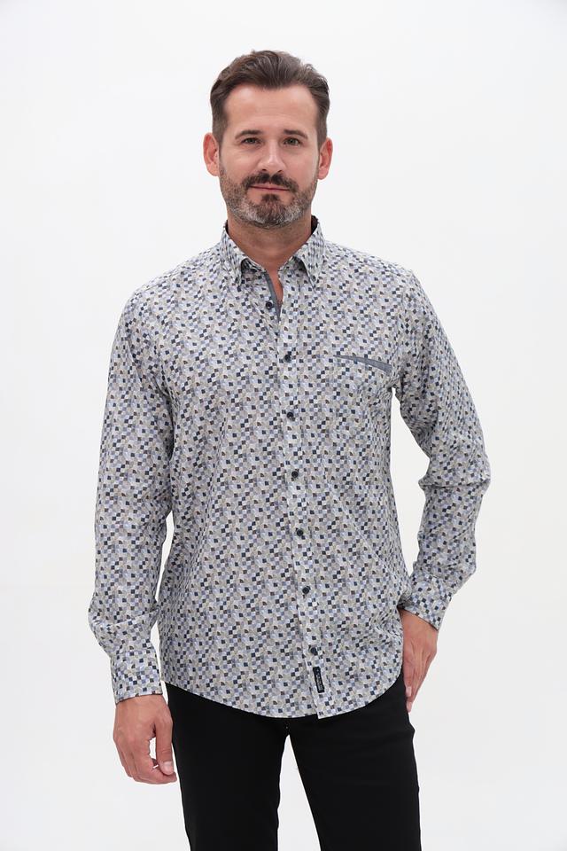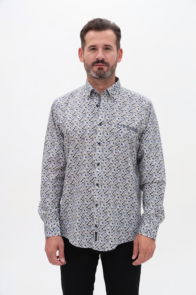 Мужская рубашка Casa Moda серого цвета с оригинальным геометрическим принтом. Изготовлена из 100% хлопка, обеспечивающего комфорт и воздухопроницаемость. Состав: хлопок 100%