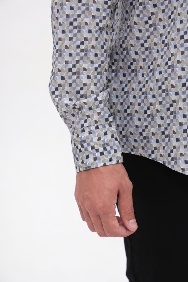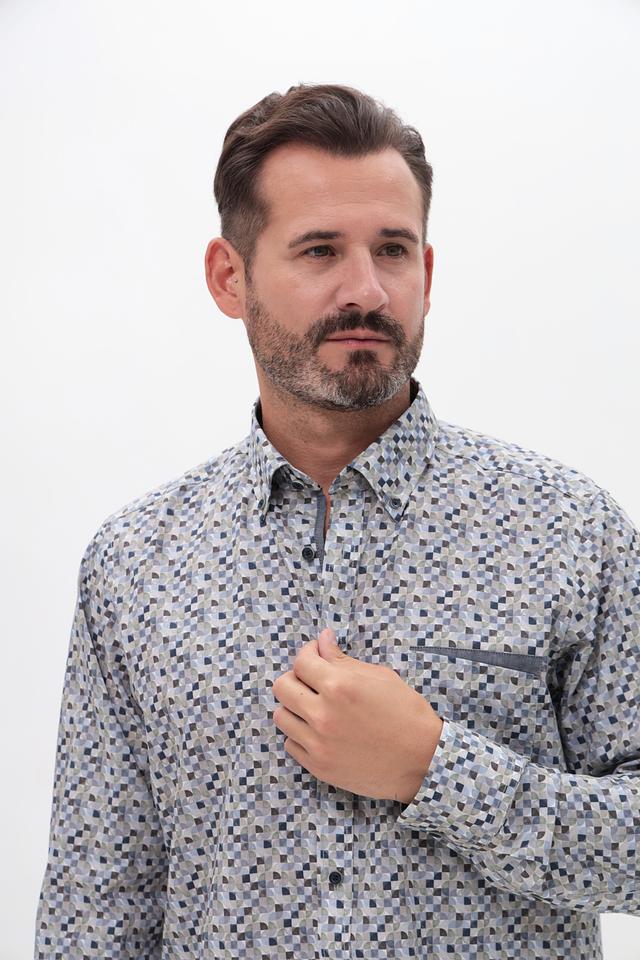 Эта стильная рубашка от Casa Moda станет отличным дополнением к вашему гардеробу. Выполнена в светло-серой цветовой гамме и украшена ярким геометрическим принтом, который придаёт ей современный вид.