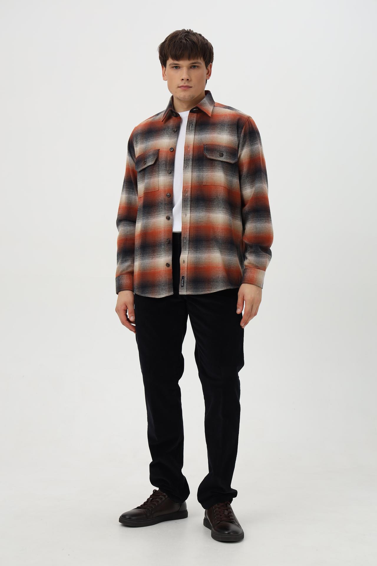 - Дизайн: Классический крой рубашки с длинным рукавом и клетчатым принтом, дополненный двумя нагрудными карманами.
