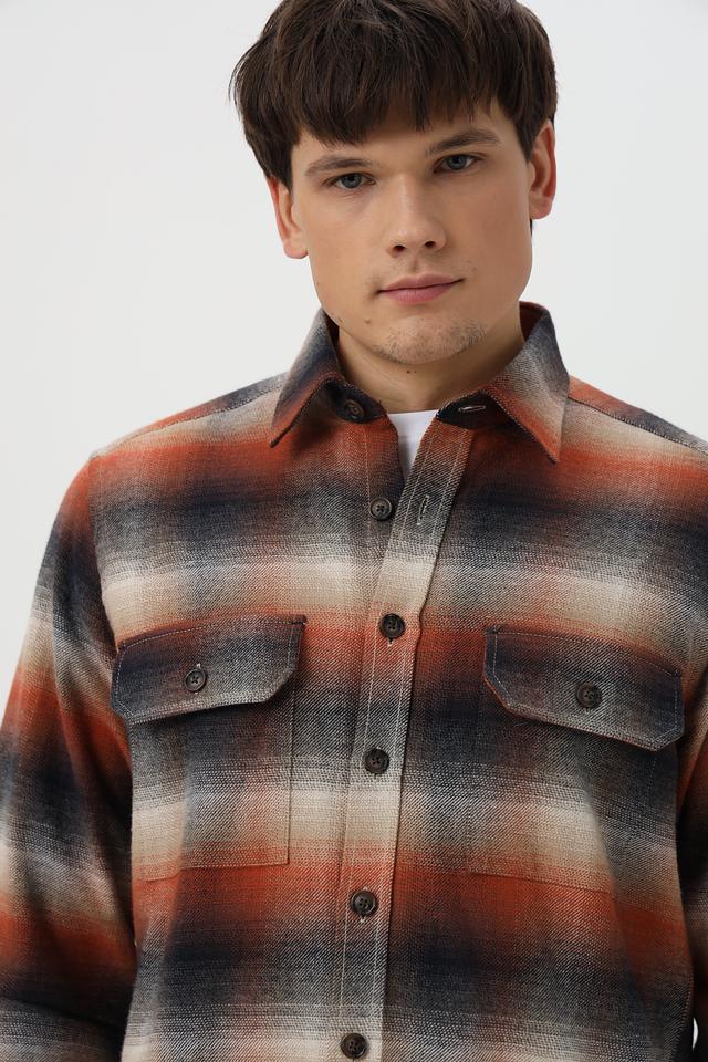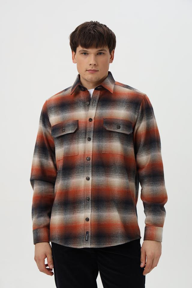 Мужская рубашка Casa Moda оранжево-серого цвета в классическую клетку. Изготовлена из 100% хлопка, обеспечивающего комфорт и воздухопроницаемость. Состав: хлопок 100%