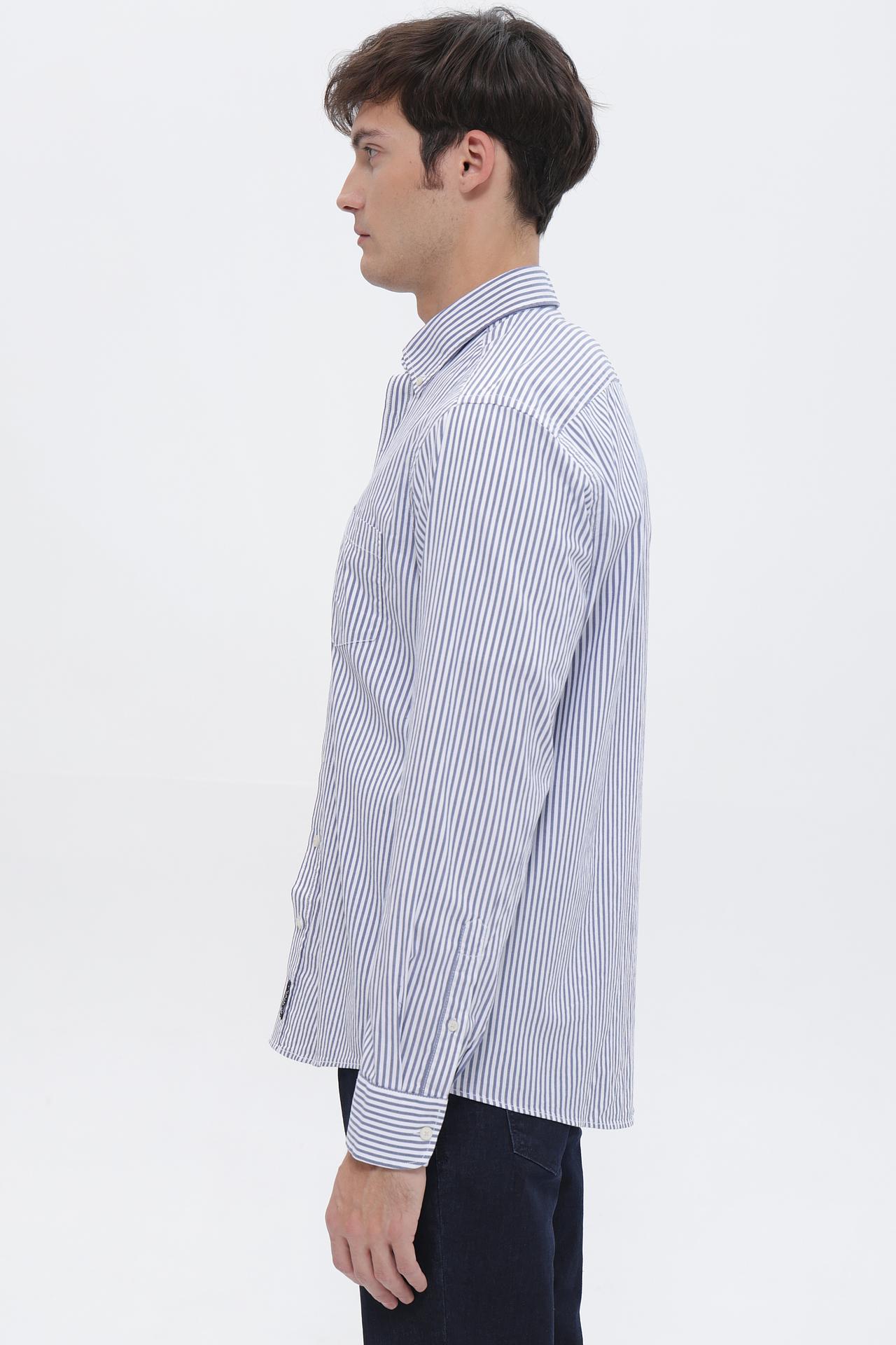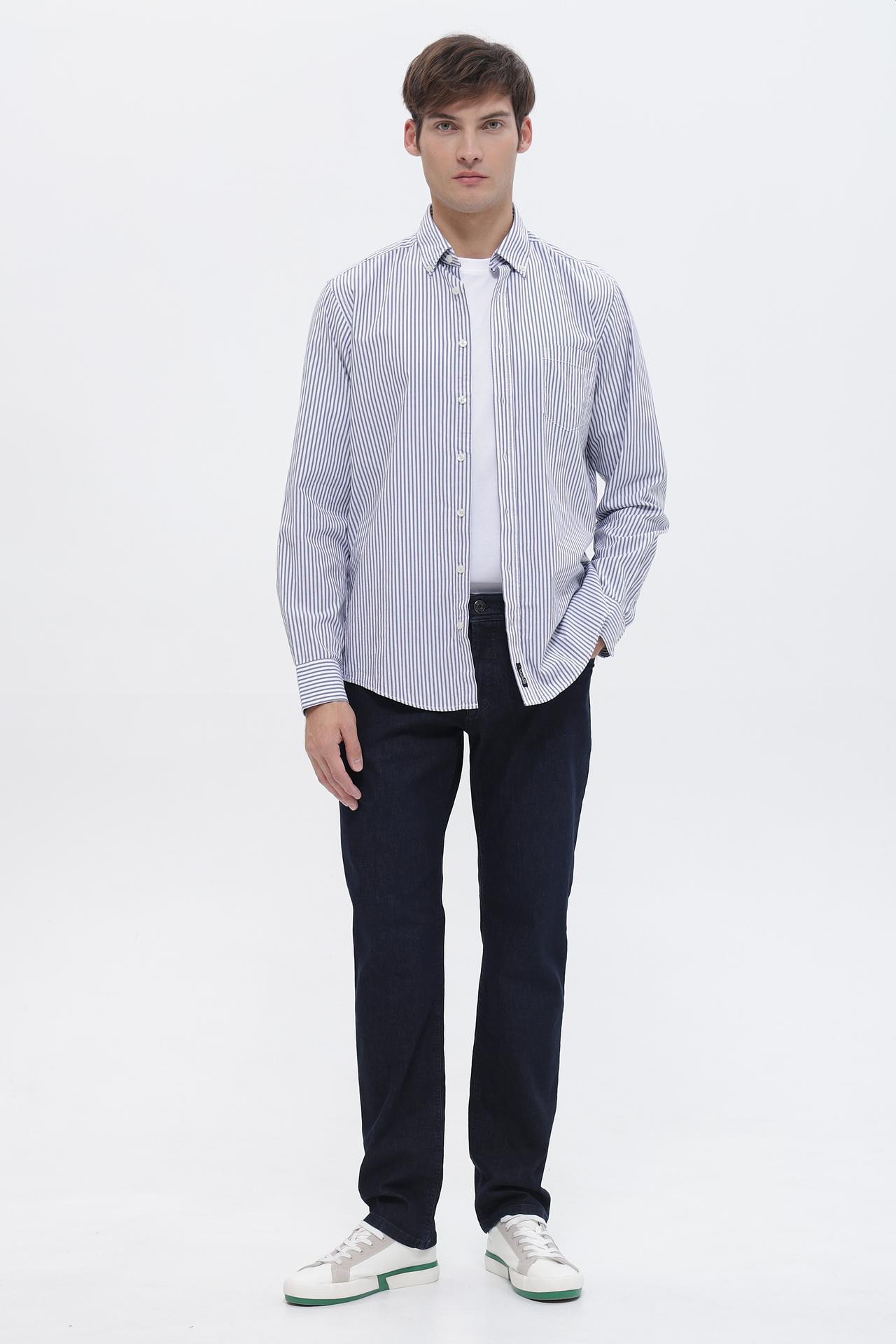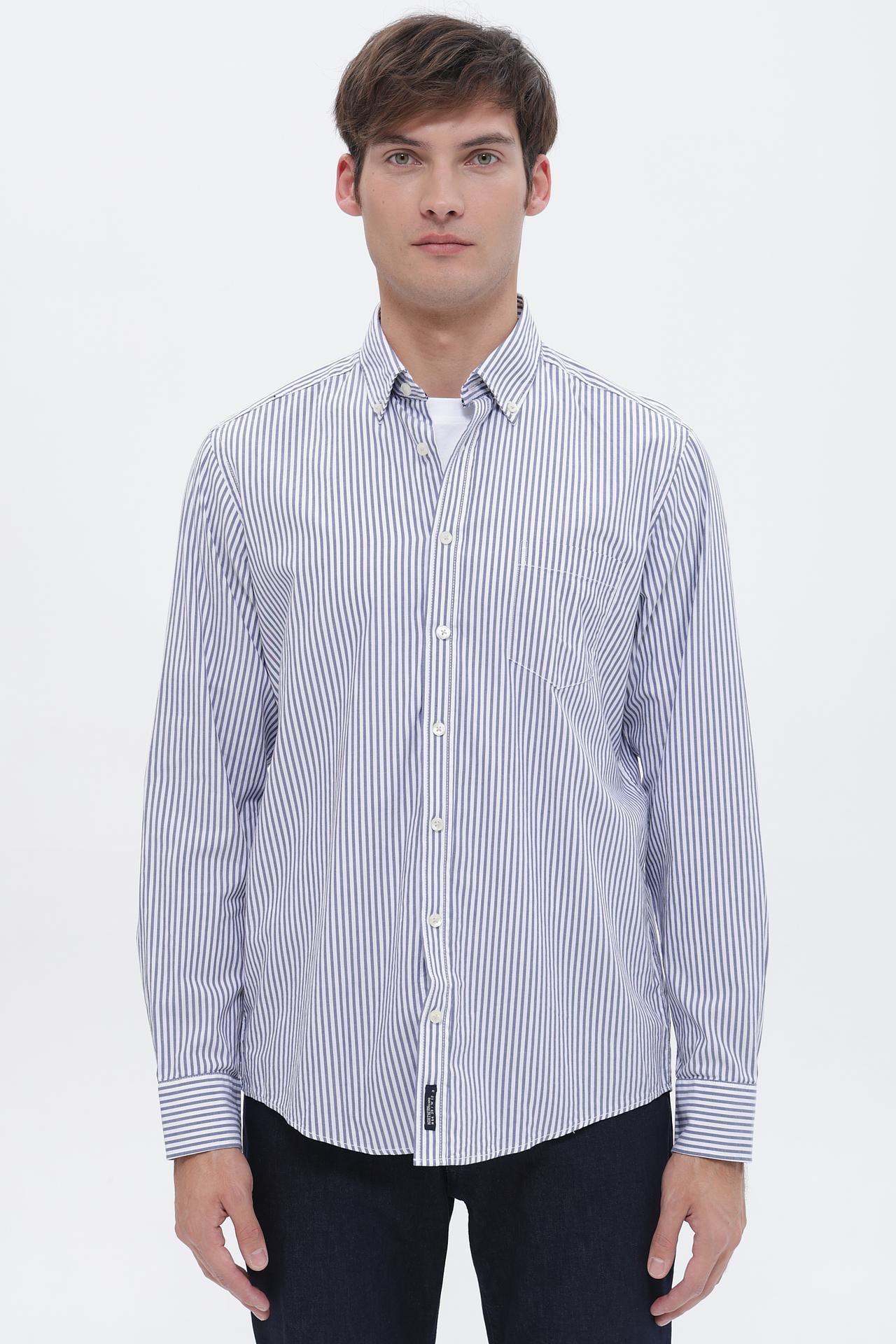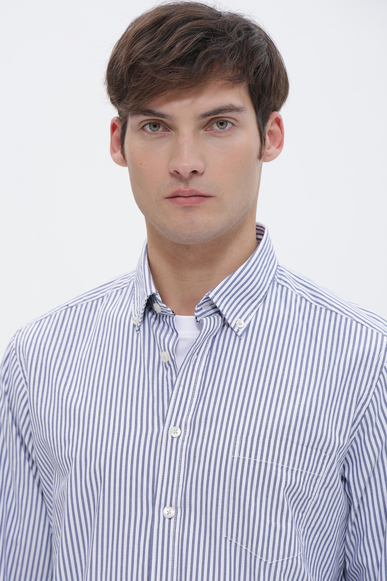 Рубашка идеально подходит как для создания деловых образов в сочетании с брюками или чиносами, так и для более расслабленных ансамблей с джинсами. Модель имеет классический воротник на пуговицах, нагрудный карман и длинные рукава с манжетами, что подчеркивает её традиционный дизайн.