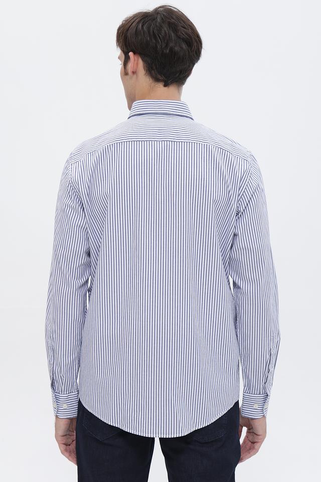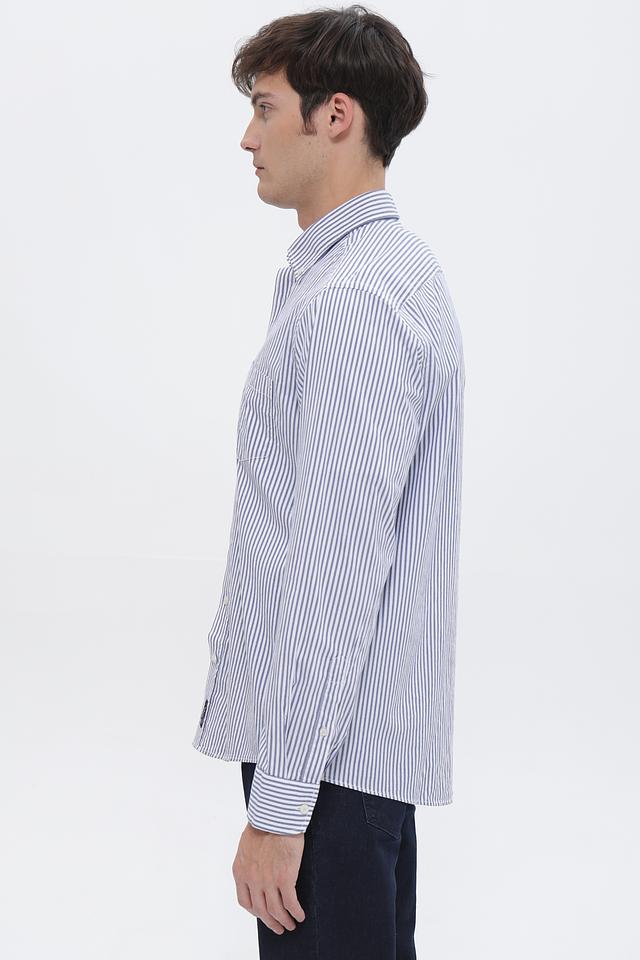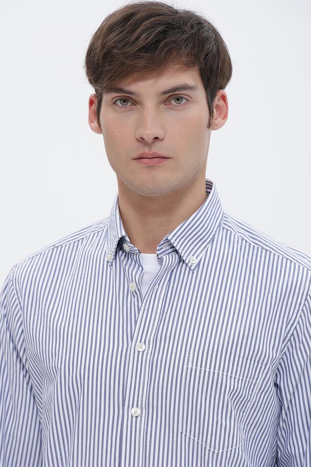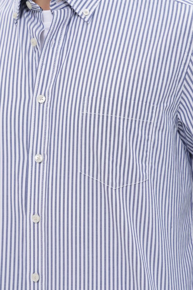 Основной цвет рубашки – белый, дополненный вертикальными полосами синего цвета. Такое сочетание делает рубашку универсальной и подходящей для различных случаев – от деловых встреч до повседневных прогулок.