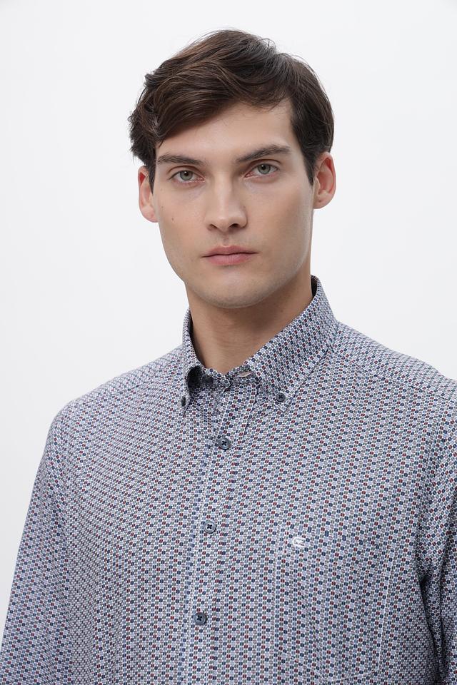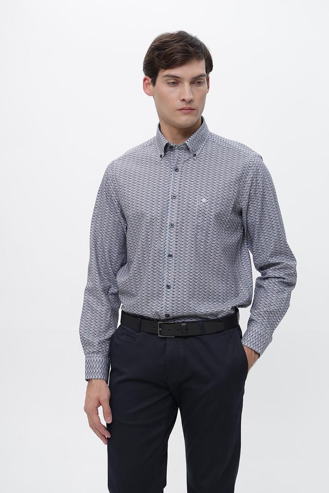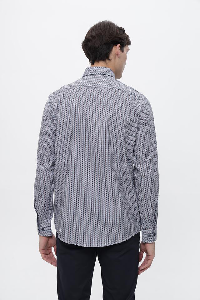 Мужская рубашка Casa Moda серого цвета с геометрическим принтом. Изготовлена из 100% хлопка, обеспечивающего комфорт и воздухопроницаемость. Состав: хлопок 100%