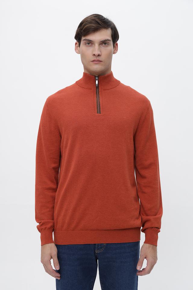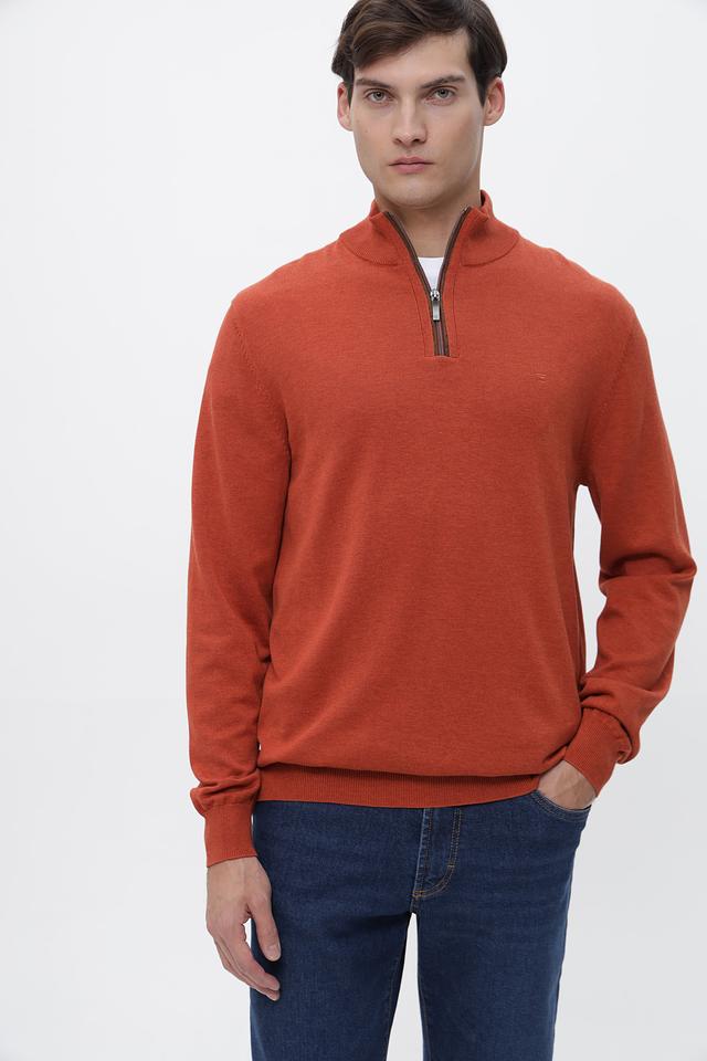 Мужской джемпер Casa Moda терракотового цвета с короткой молнией на горловине. Изготовлен из 100% хлопка, обеспечивающего комфорт и воздухопроницаемость. Состав: хлопок 100%