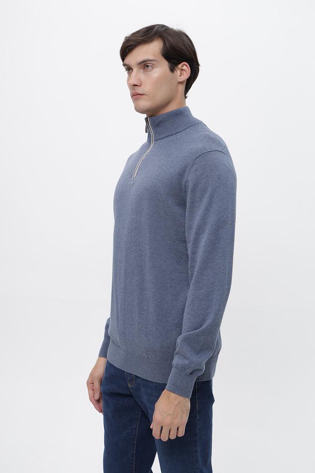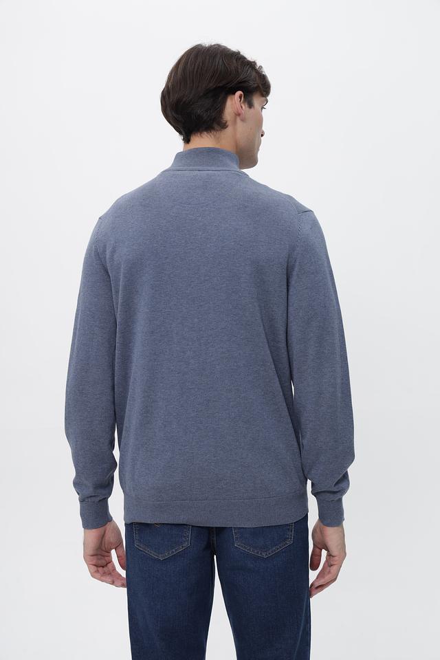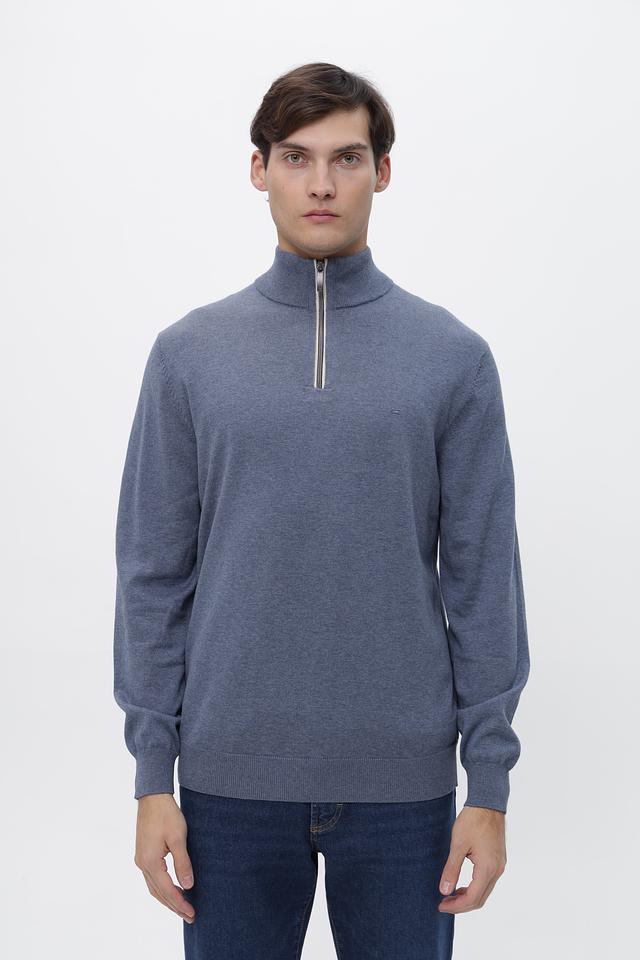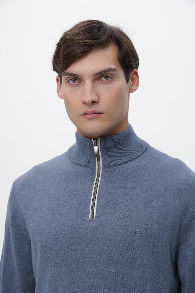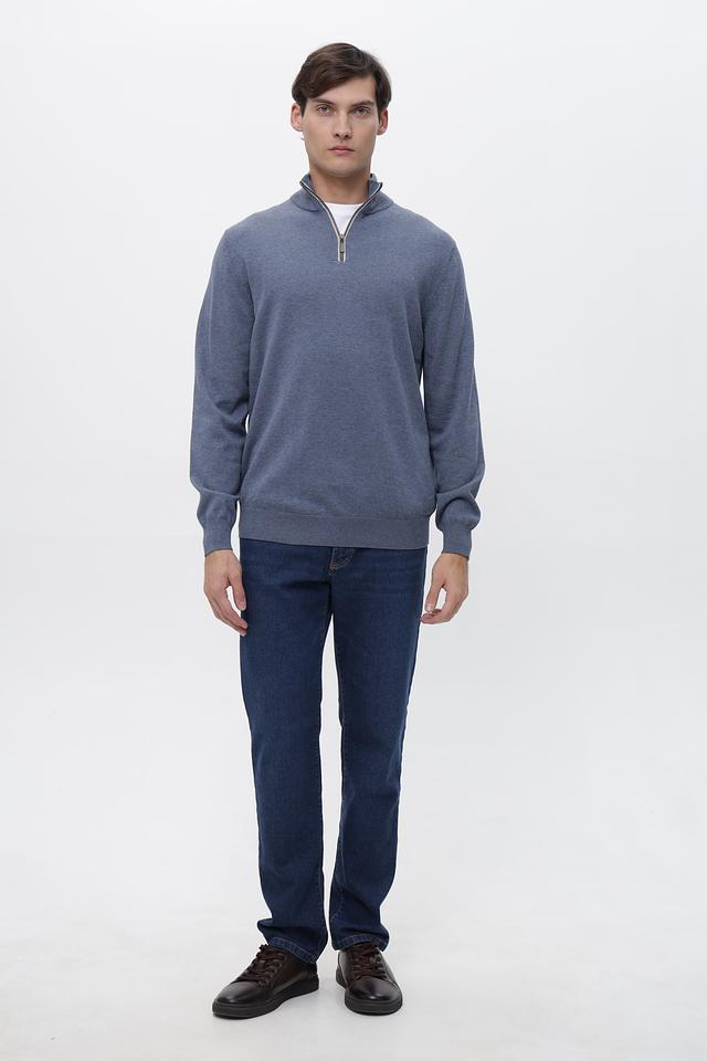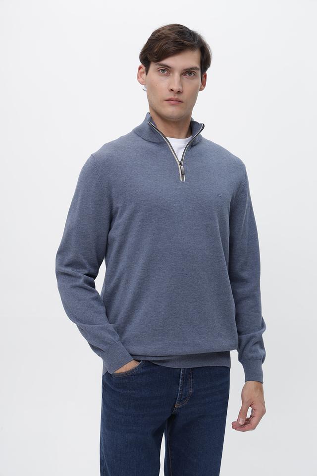 Мужской джемпер от Casa Moda выполнен в спокойном голубом цвете. Модель имеет классический крой с длинными рукавами и круглым вырезом горловины, дополненным короткой молнией.