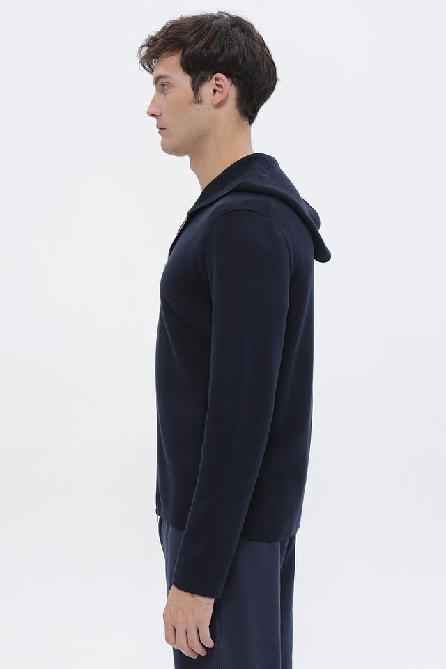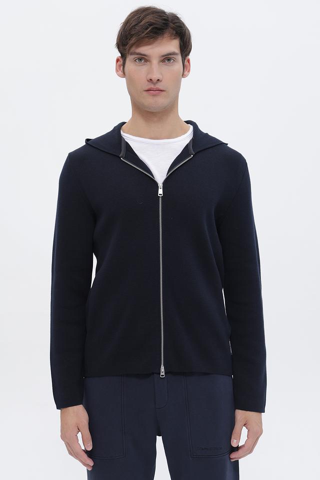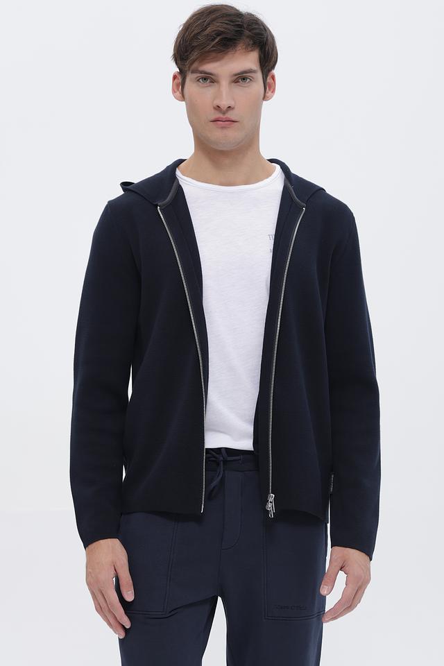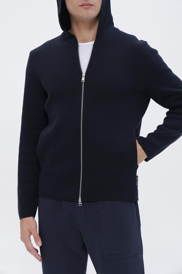Мужской кардиган Casa Moda темно-синего цвета на молнии с капюшоном. Изготовлен из мягкого трикотажа, обеспечивающего комфорт и удобство. Отличный выбор для создания стильного повседневного образа. Состав: хлопок 60%, полиэстер 40%