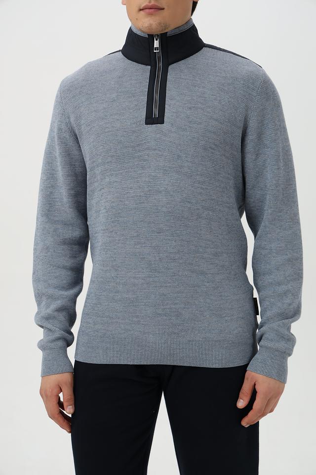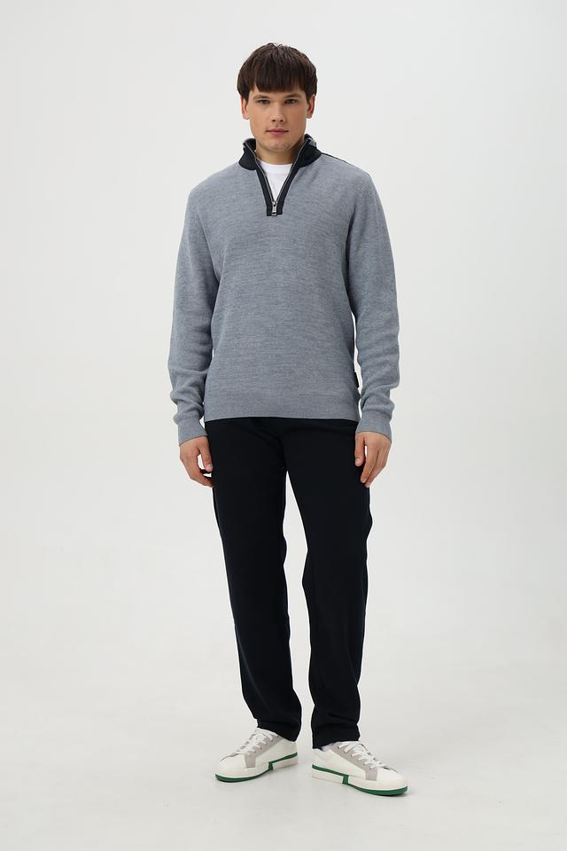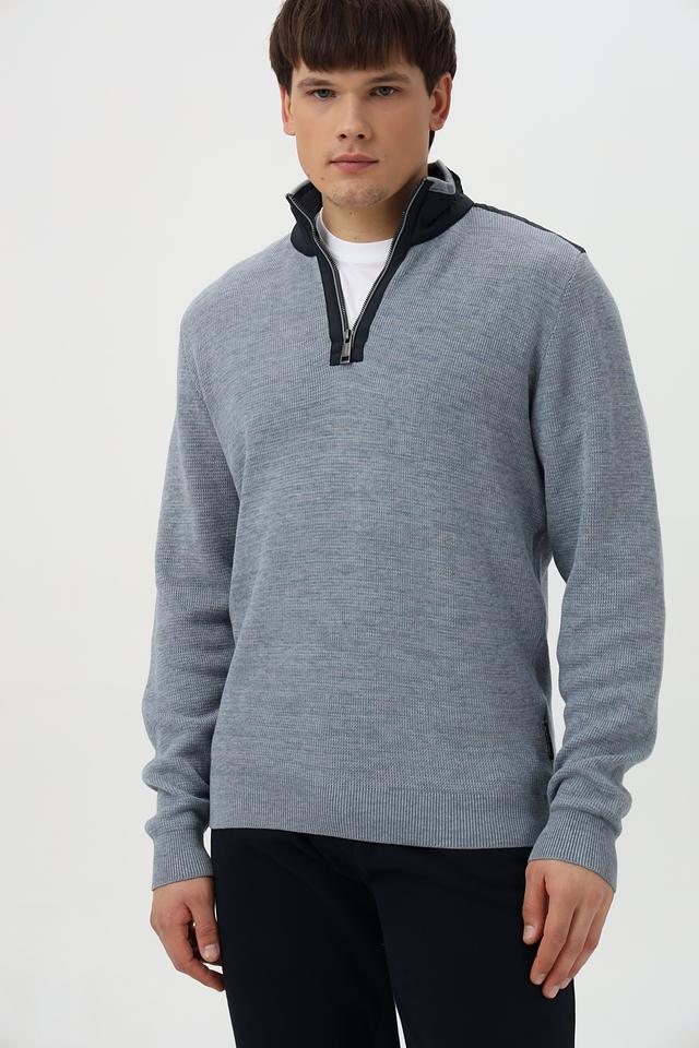 Мужской джемпер от Casa Moda выполнен в сером цвете и имеет удобную посадку. Модель дополнена короткой молнией на воротнике, что придает ей современный вид.