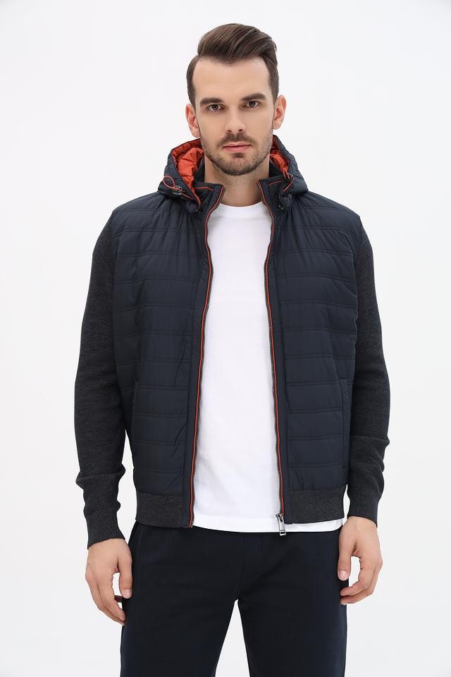 Мужская куртка-кардиган Casa Moda тёмно-синего цвета с комбинированной текстурой и капюшоном. Изготовлена из 100% хлопка, обеспечивающего комфорт и удобство в носке. Состав: хлопок 100%