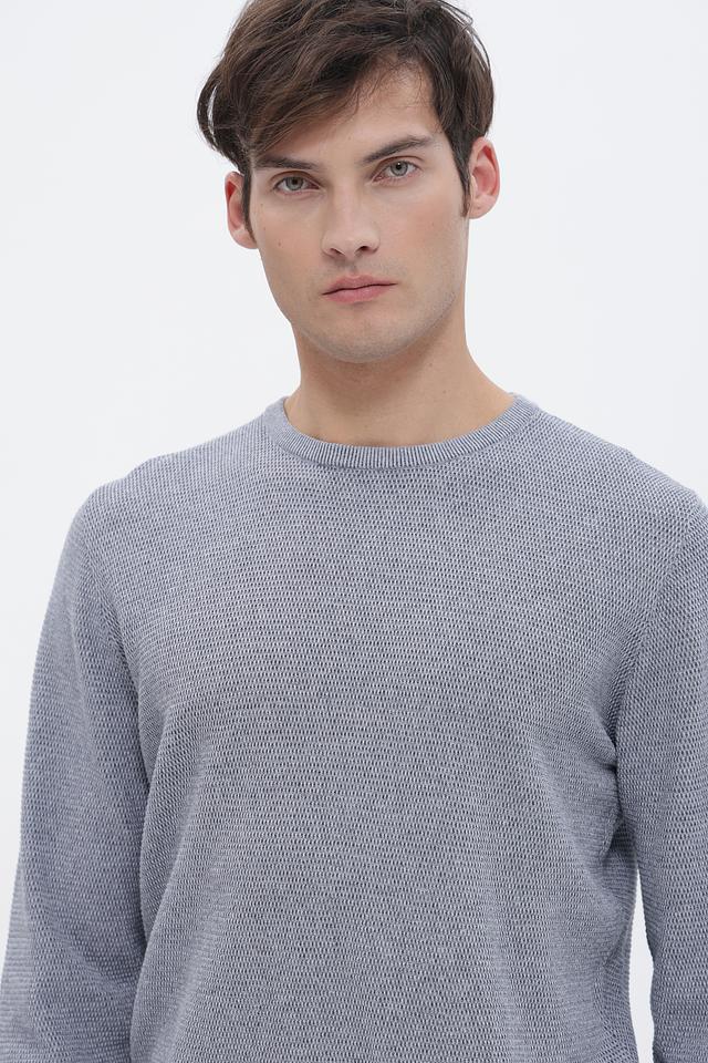 Джемпер имеет классический круглый вырез горловины и прямой крой, который подходит для большинства типов фигур. Текстурная вязка придает изделию интересный вид и делает его более выразительным.