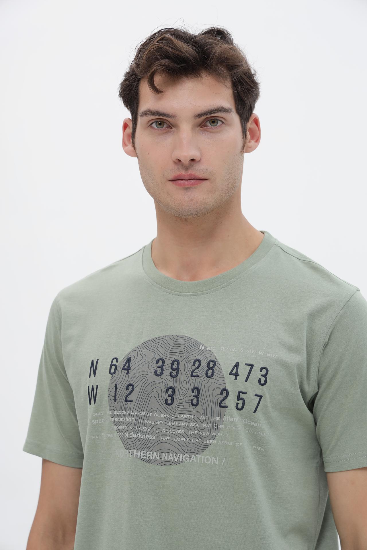 - Дизайн: Классический крой футболки с коротким рукавом и круглым вырезом горловины. Центральный элемент – графический принт с навигационной тематикой, придающий изделию современный вид.