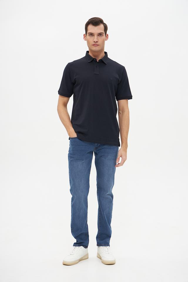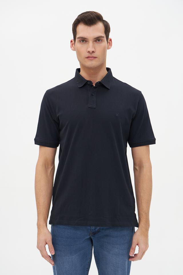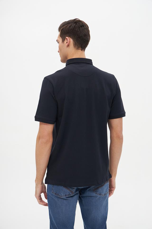Поло имеет короткий рукав, классический воротник и застёжку на пуговицах. Тёмно-синий цвет делает его универсальным и подходящим для различных случаев – от повседневной носки до деловых встреч.
