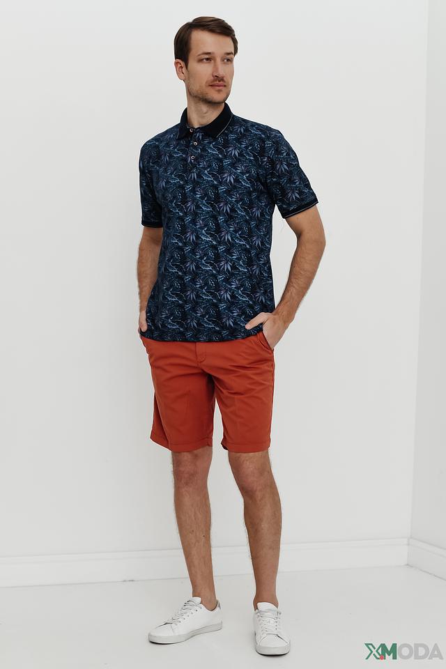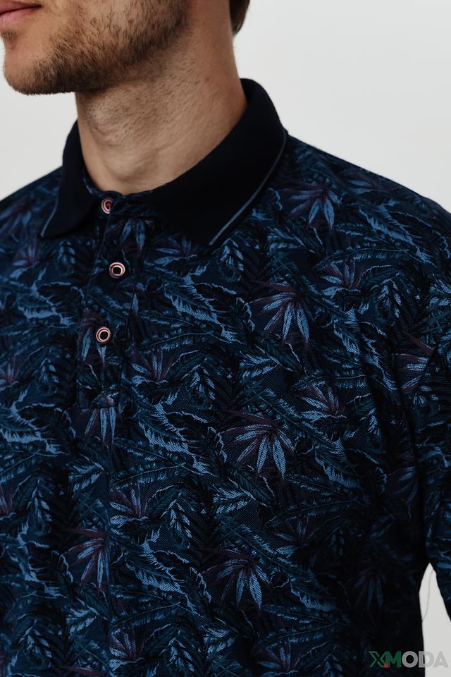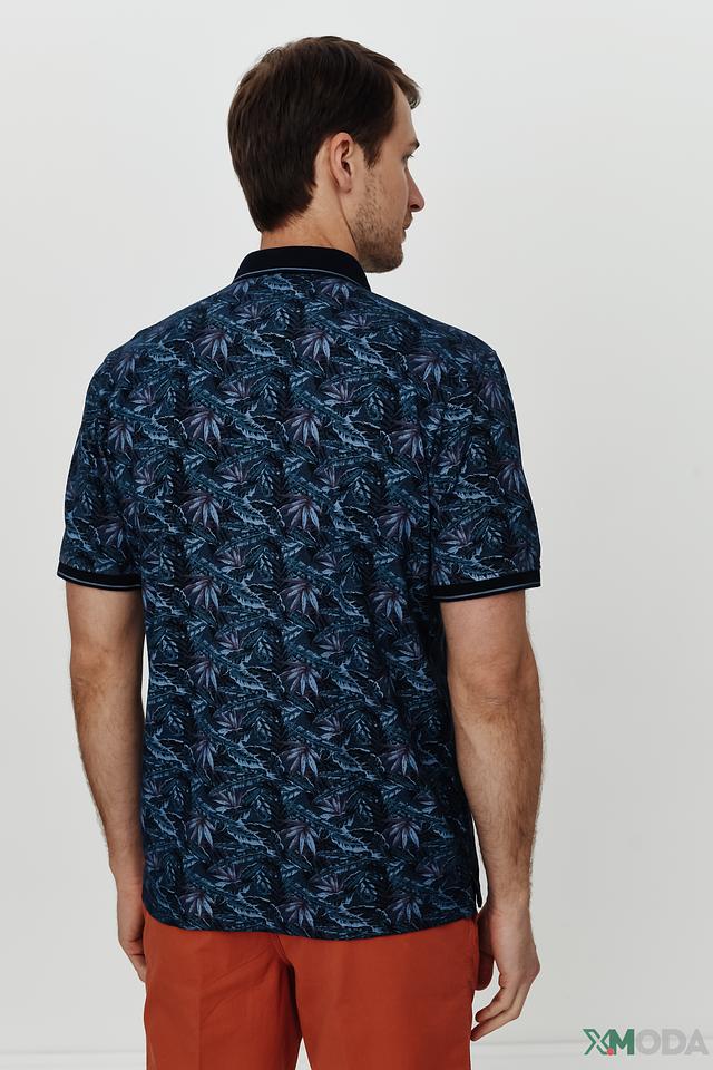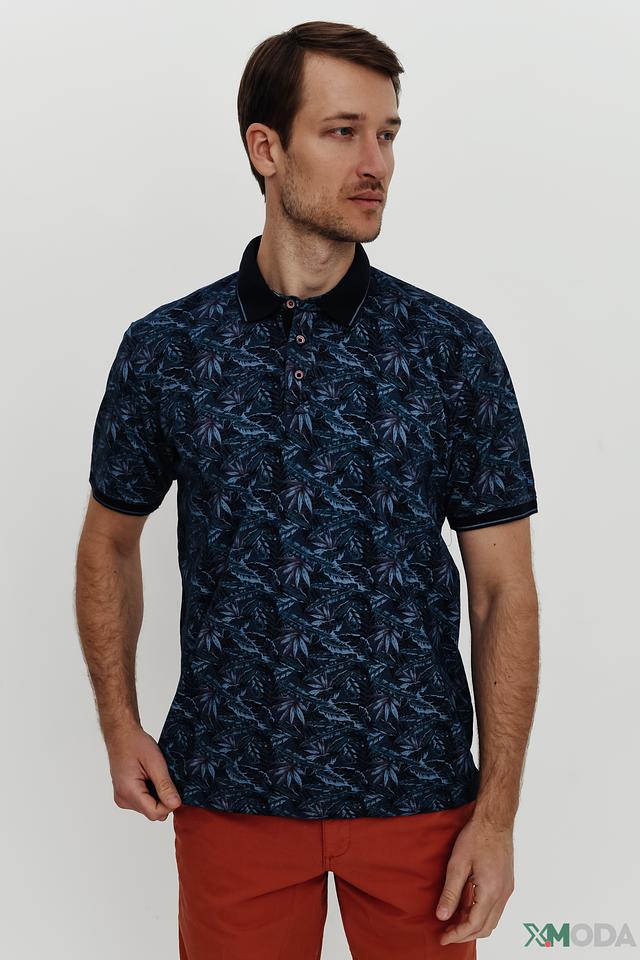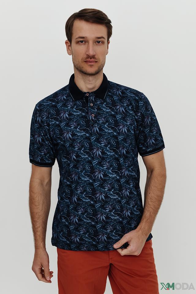 Мужское поло Casa Moda синего цвета с ярким растительным принтом. Изготовлено из 100% хлопка, обеспечивающего комфорт и воздухопроницаемость. Классический крой и короткие рукава делают эту модель идеальной для повседневной носки. Состав: хлопок 100%