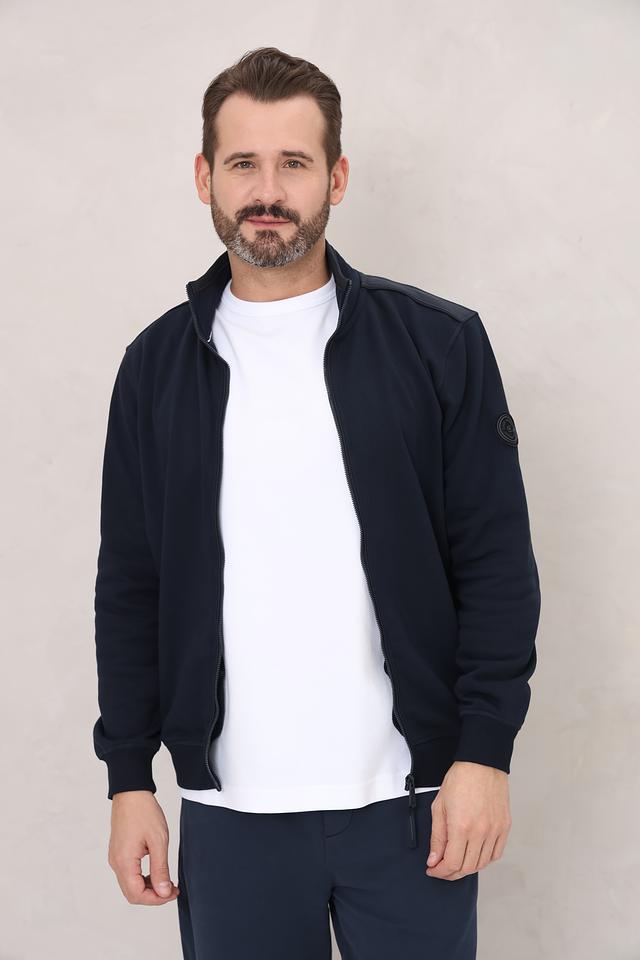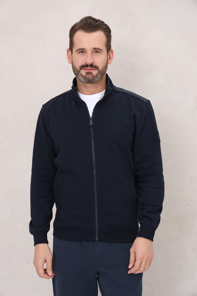 Мужской кардиган Casa Moda темно-синего цвета – удобная и практичная модель на молнии. Изготовлен из мягкого хлопка с добавлением полиэстера, что обеспечивает комфорт и долговечность. Отличный выбор для повседневной носки. Состав: хлопок 70%, полиэстер 30%