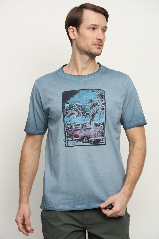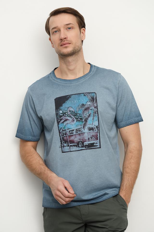 Мужская футболка Casa Moda голубого цвета с ярким принтом в виде тропического пейзажа. Изготовлена из 100% хлопка, обеспечивающего комфорт и воздухопроницаемость. Отличный выбор для повседневного образа. Состав: хлопок 100%