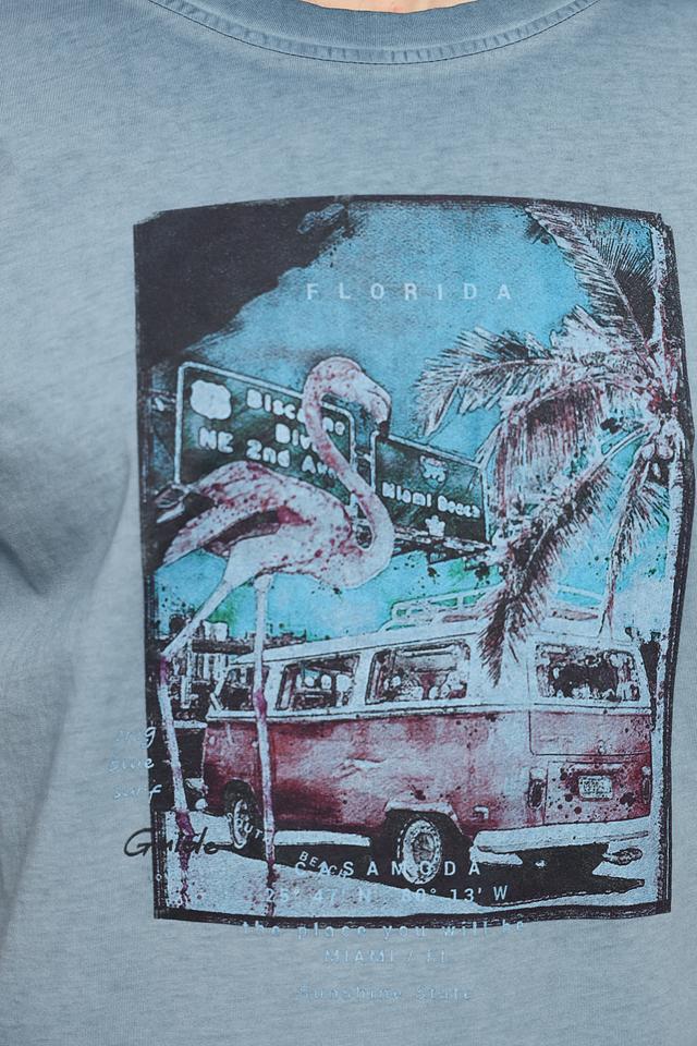 Эта стильная футболка от Casa Moda станет отличным дополнением к вашему гардеробу. Футболка выполнена в приятном голубом цвете и украшена эффектным принтом с изображением пальм, фламинго и дорожных знаков в стиле ретро.