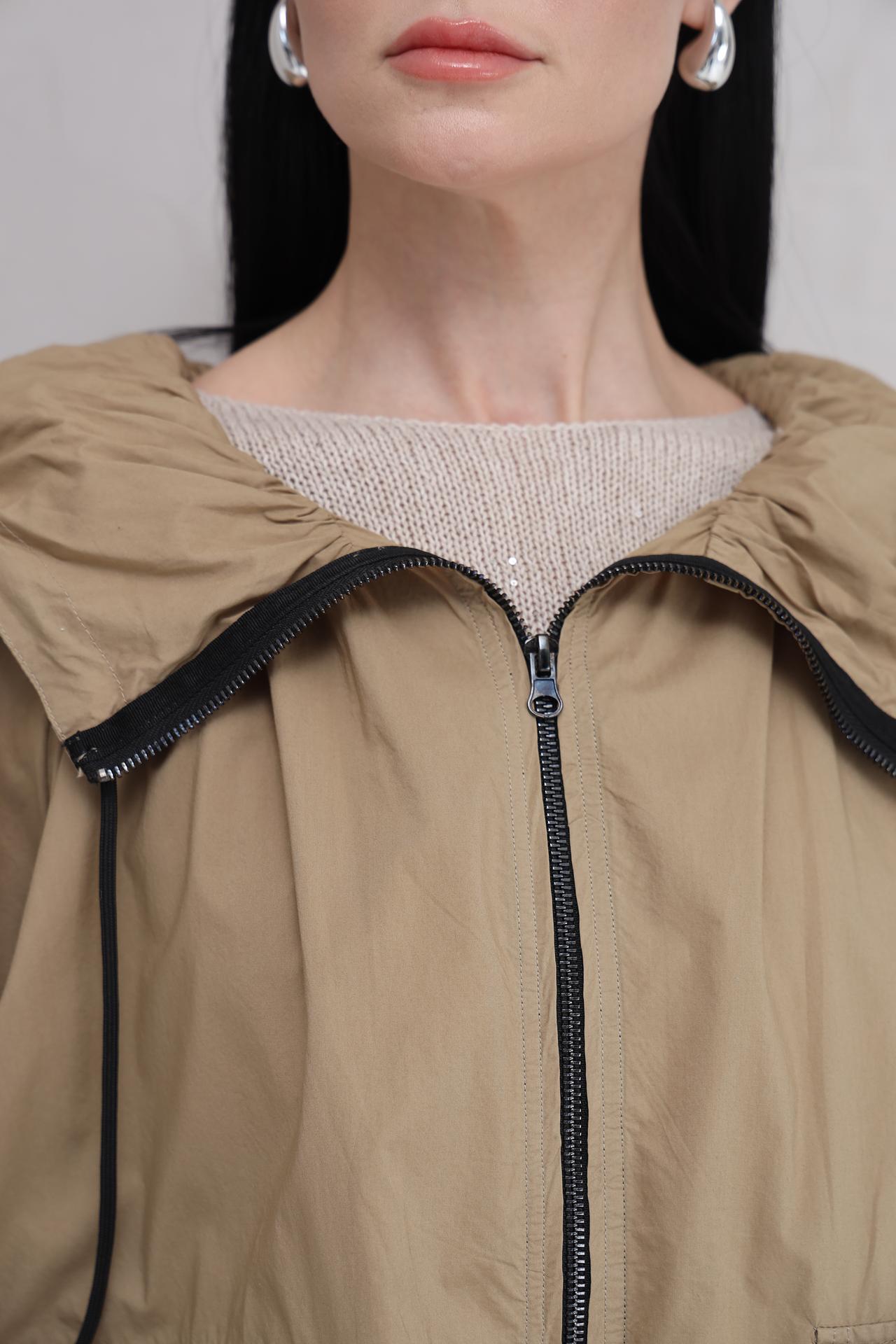 - Удобный капюшон: Защищает от ветра и небольшого дождя, придавая образу завершённость.