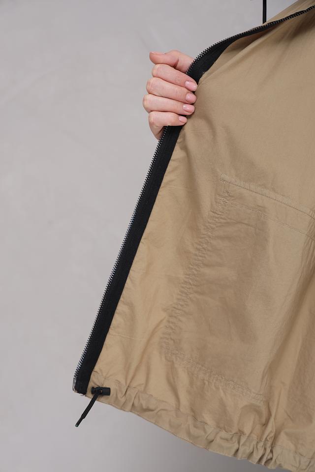 Ветровка изготовлена из 100% хлопка, что делает ее приятной на ощупь и позволяет коже дышать. Эта модель идеально подходит для повседневной носки в теплую погоду.
