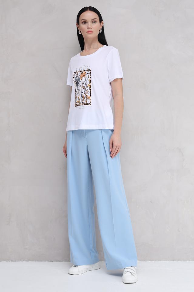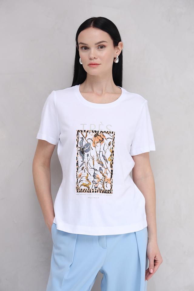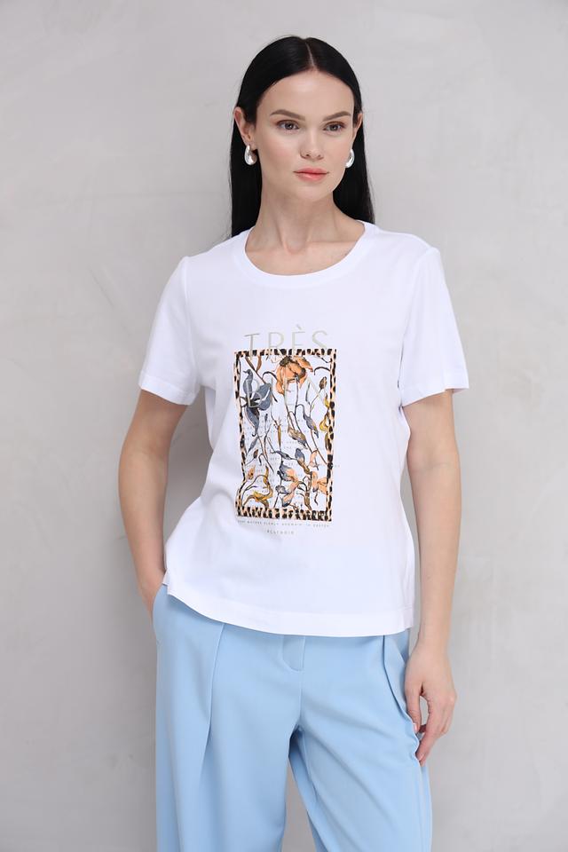 Особенностью данной модели является яркий и оригинальный принт на лицевой стороне. Дизайн футболки выполнен в современном стиле и подойдет для создания различных образов – от повседневных до более нарядных.