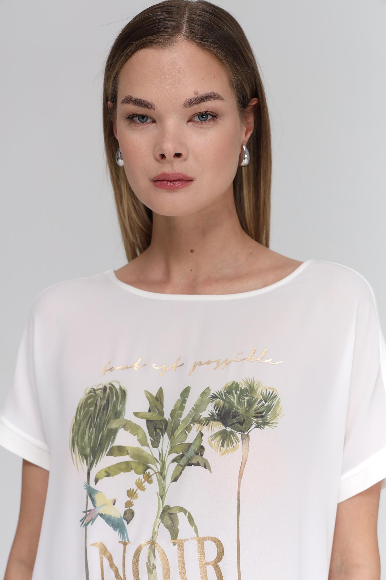 - Растительный принт. Оригинальный рисунок придает блузе неповторимый шарм и делает ее более выразительной.