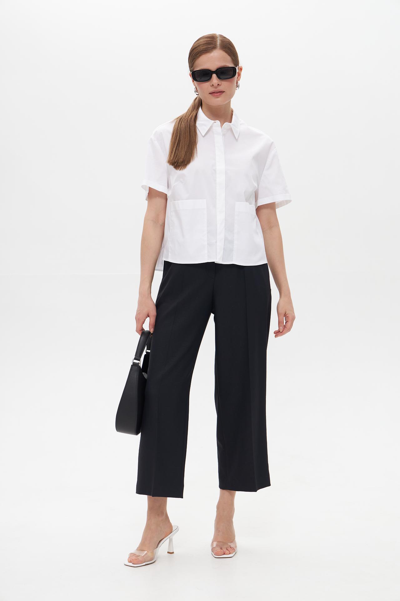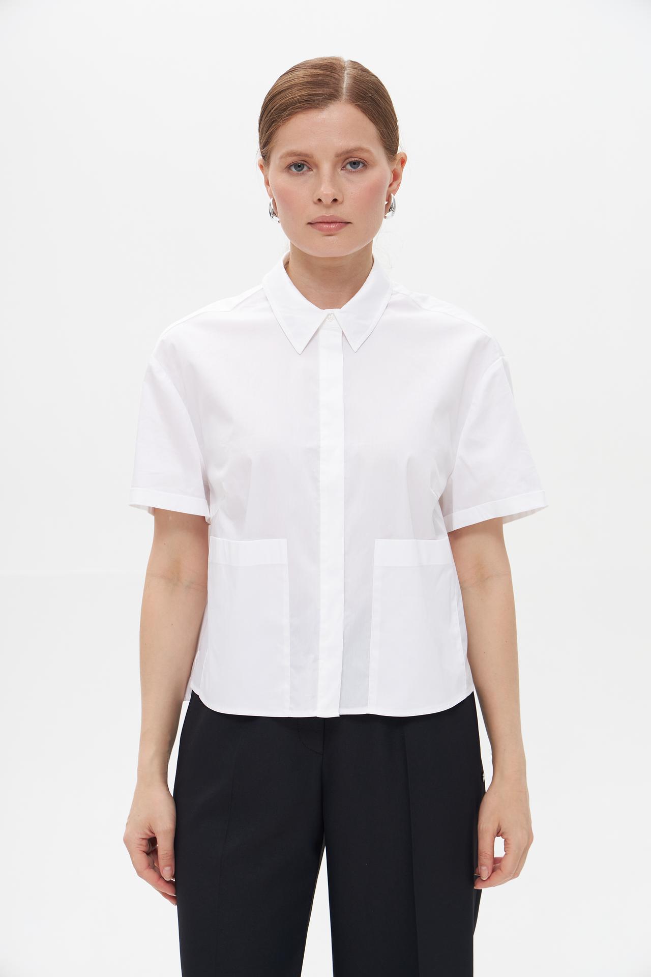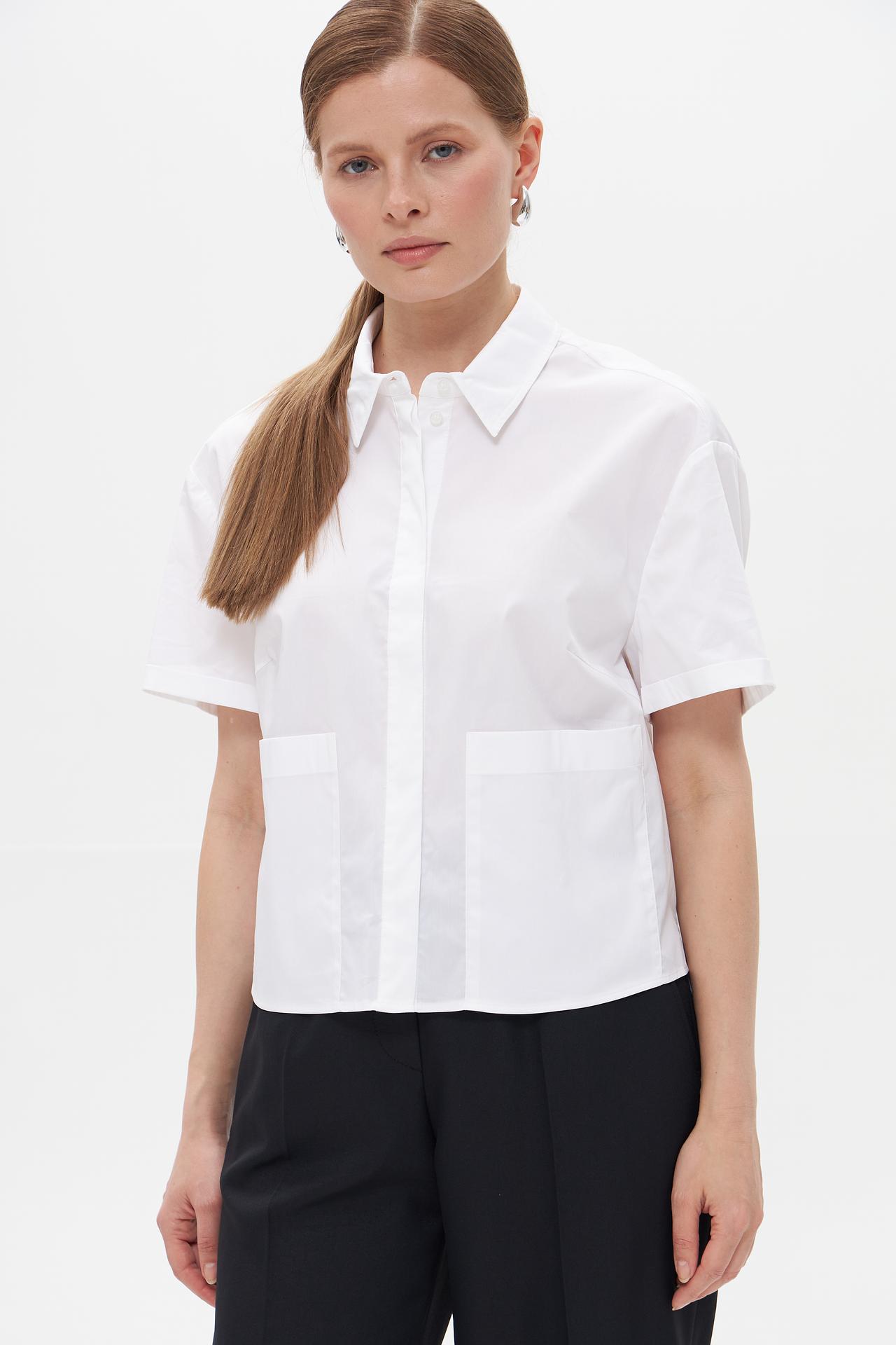 Блуза Catnoir белая с коротким рукавом и накладными карманами