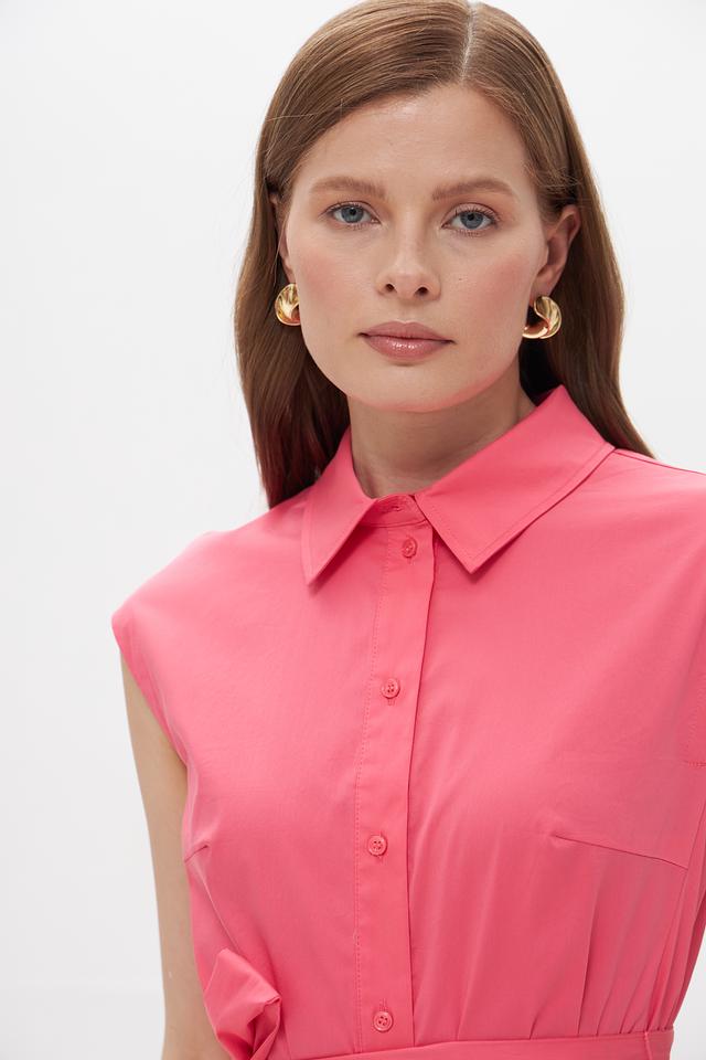 Коралловое платье от Catnoir с воротником-стойкой и приталенным силуэтом. Изготовлено из смесового хлопка с добавлением нейлона и спандекса для комфорта и хорошей посадки. Состав: хлопок 74%, нейлон 23%, спандекс 3%