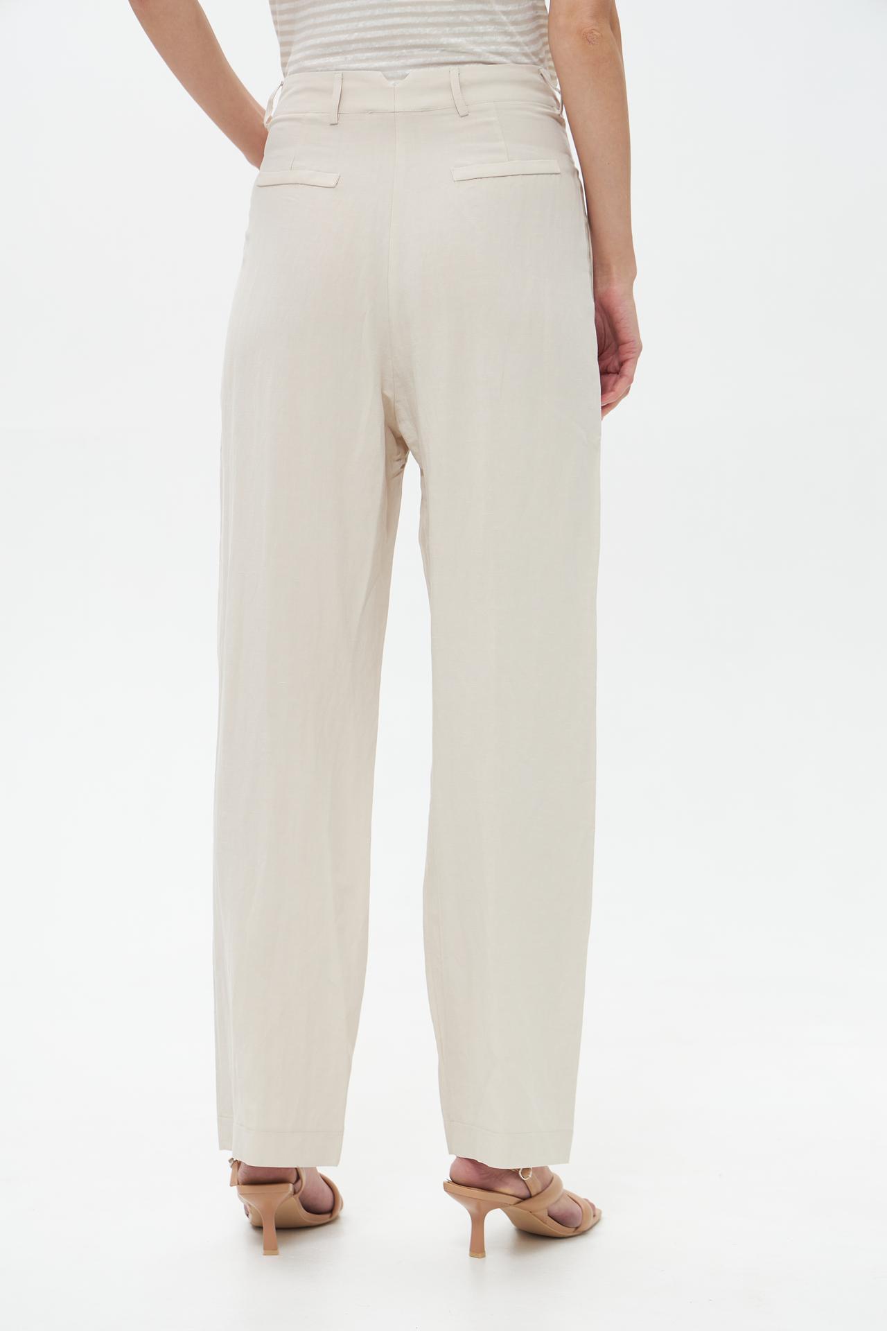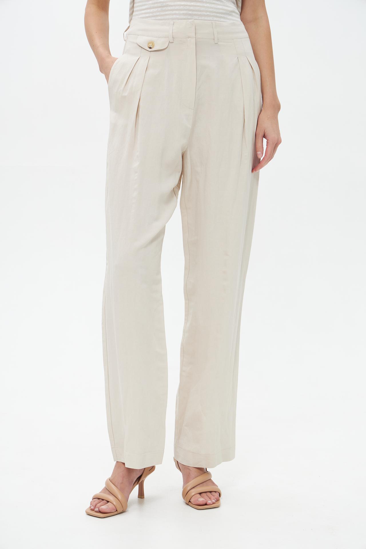 Брюки Catnoir широкие бежевые с защипами из вискозы и льна