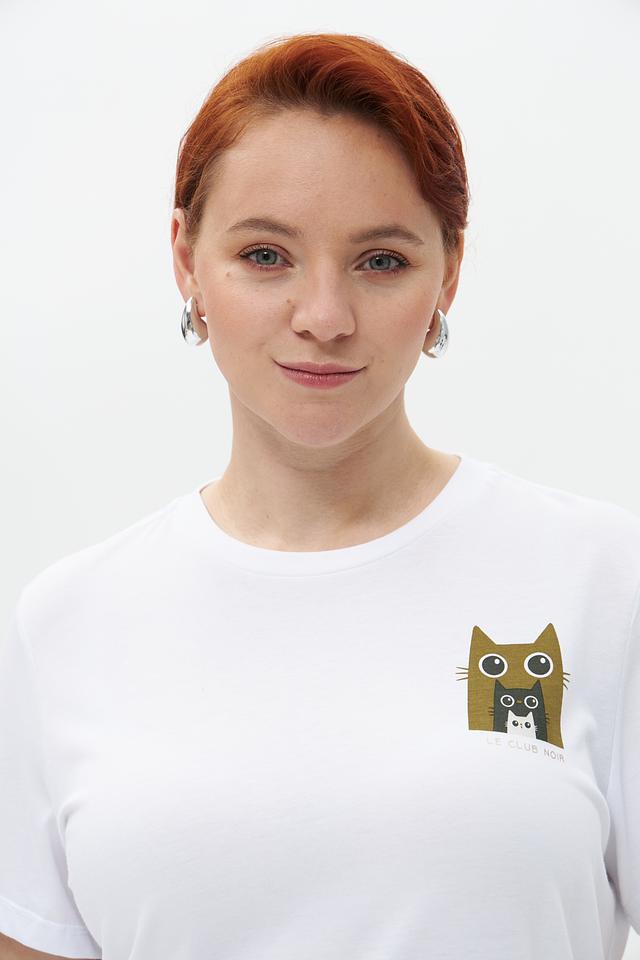 Белая футболка Catnoir с забавным принтом котика — отличный выбор для повседневного образа. Изготовлена из мягкого и приятного к телу сочетания хлопка и модала. Состав: хлопок 50%, модал 50%