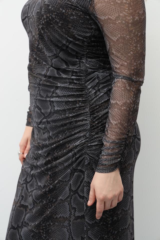 Это стильное платье от Catnoir станет отличным дополнением к вашему гардеробу. Платье выполнено в чёрном цвете и украшено оригинальным принтом, имитирующим кожу рептилии.