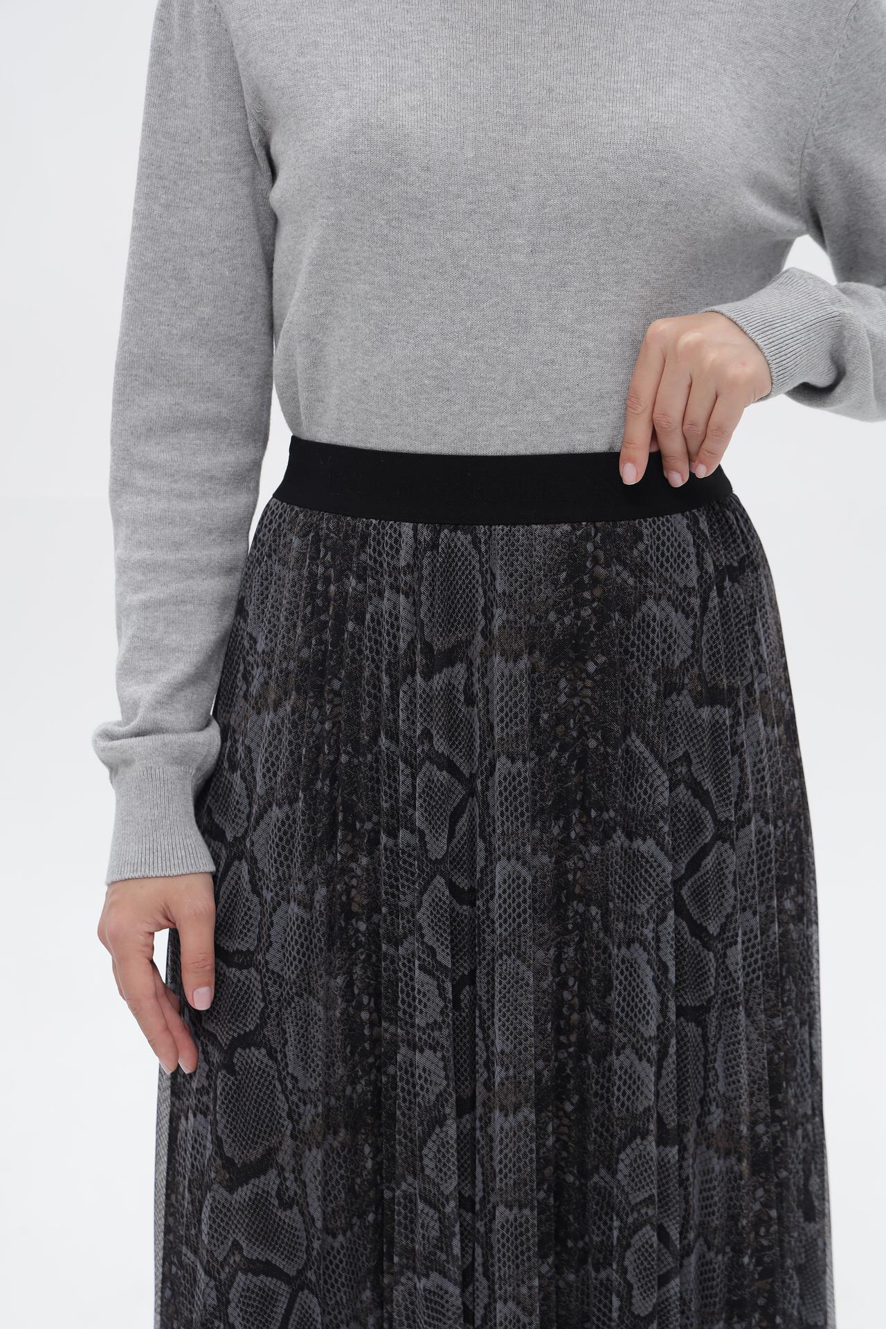 - Дизайн: Плиссированная модель с эффектным принтом под змеиную кожу.