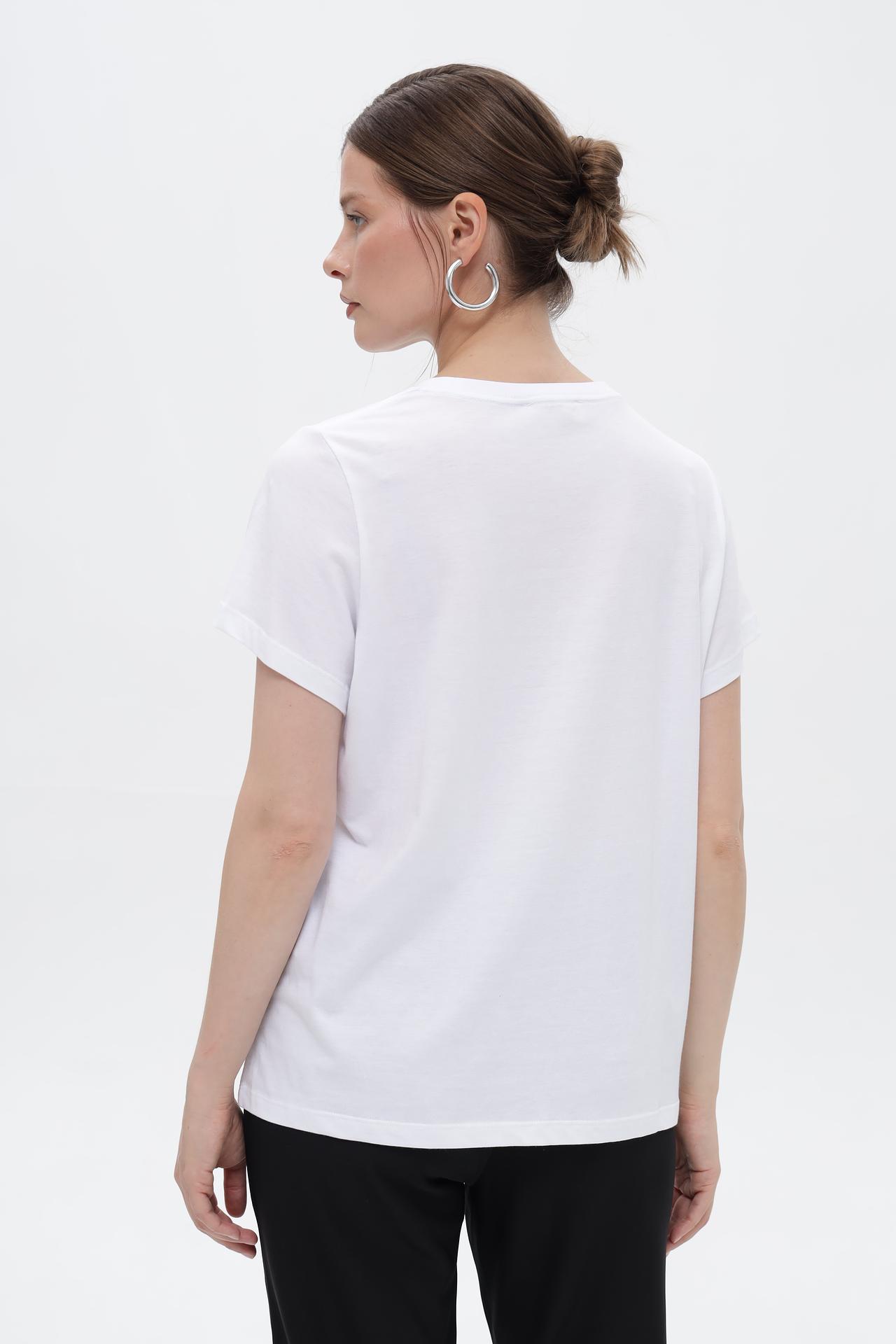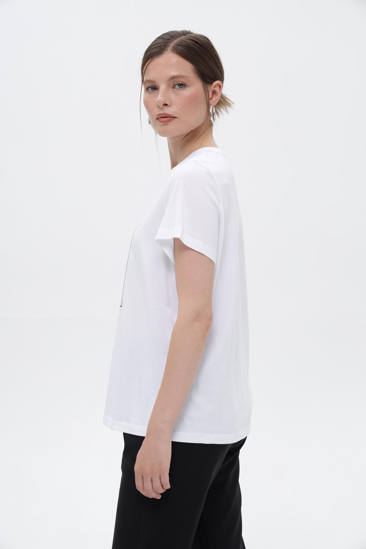 Эта футболка станет отличным дополнением к вашему гардеробу. Сочетайте её с джинсами, юбками или шортами для создания разнообразных образов.