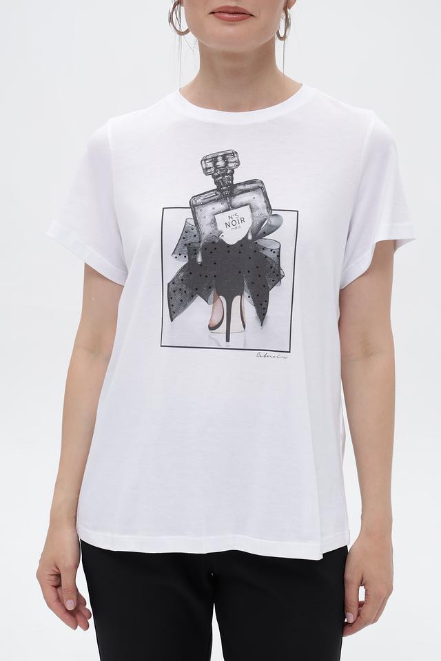 Белая футболка Catnoir с графичным принтом в виде флакона духов станет стильным дополнением к вашему образу. Изготовлена из мягкого хлопка с добавлением модала для комфорта в носке. Состав: хлопок 50%, модал 50%