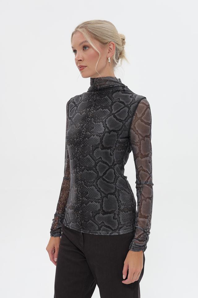 Стильная блузка Catnoir чёрного цвета с эффектным принтом reptile. Изготовлена из полиэстера и спандекса, обеспечивающих комфорт и лёгкость в уходе. Идеально подойдёт для создания модных образов. Состав: полиэстер 92%, спандекс 8%