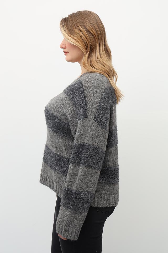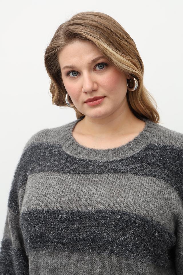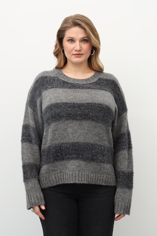 Стильный пуловер Catnoir серого цвета с полосатым дизайном. Изготовлен из мягкой смеси акрила, нейлона и альпаки для комфорта и тепла. Идеальный выбор для создания уютных образов. Состав: акрил 40%, нейлон 30%, альпака 30%
