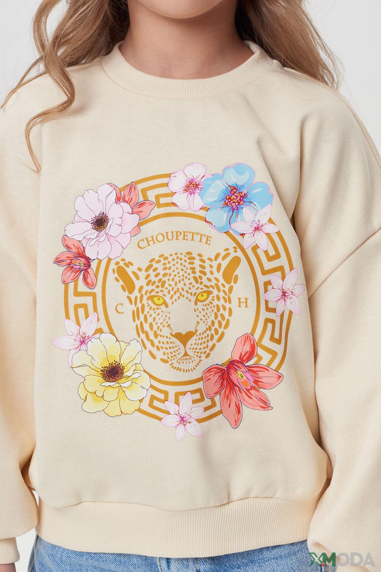 Джемпер Choupette молочный с цветочным принтом и леопардом