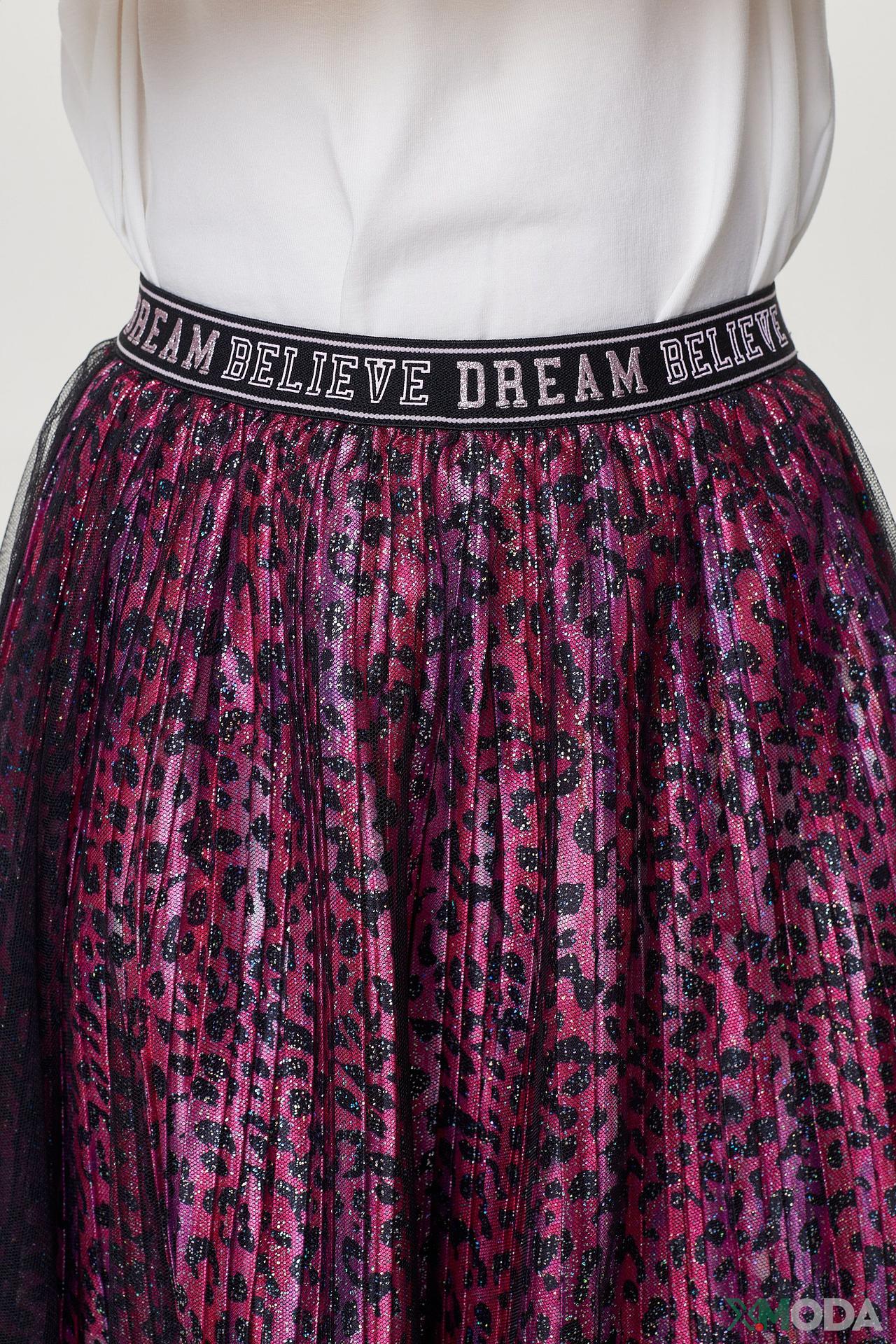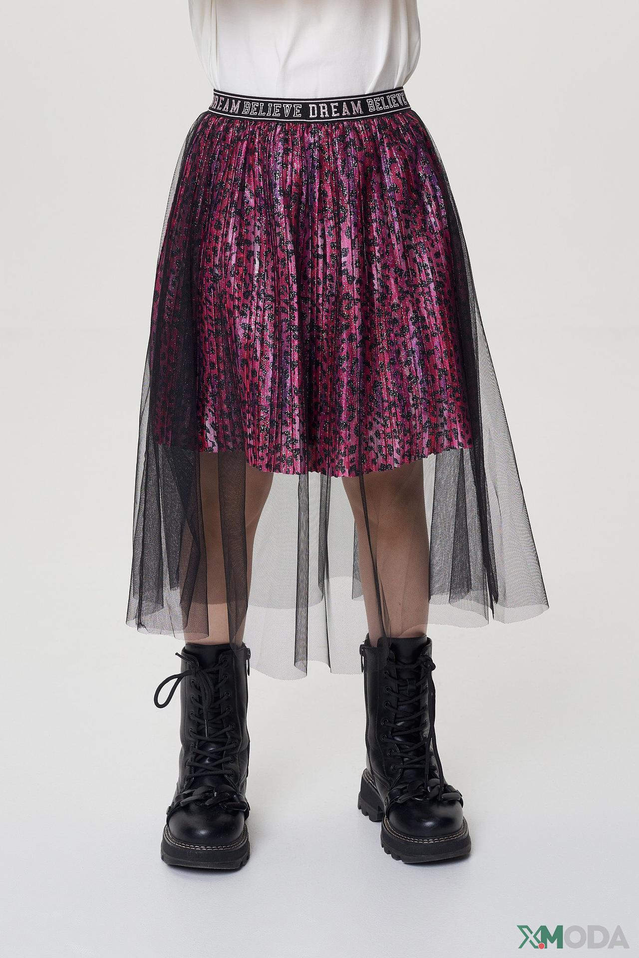 Очаровательная юбка для девочки от Choupette станет ярким акцентом в гардеробе маленькой модницы. Плиссированная ткань с блестящим эффектом и леопардовым принтом придает модели неповторимый шарм. Юбка дополнена нежной сеткой, создающей воздушный и легкий образ. Эластичный пояс с надписью обеспечит комфортную посадку и стильный вид. Идеальный выбор для праздничных мероприятий и создания модных образов на каждый день.