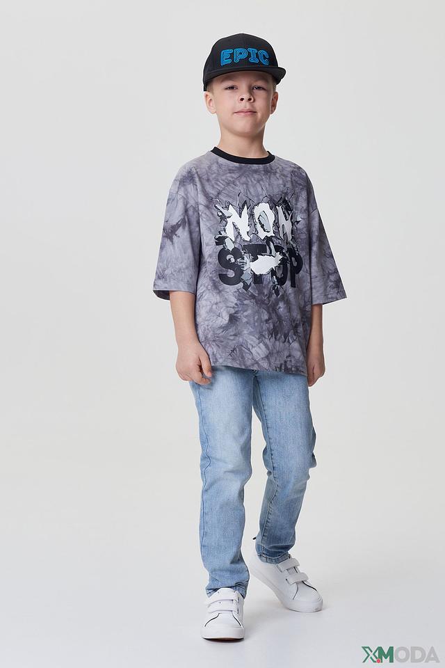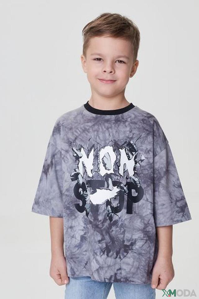 Особенностью данной модели является эффектная техника окрашивания tie-dye, создающая уникальный и яркий рисунок. Серый цвет с разводами отлично сочетается с другими элементами гардероба. На передней части футболки расположен крупный принт с надписью “NON STOP”, добавляющий образу динамичности и стиля.