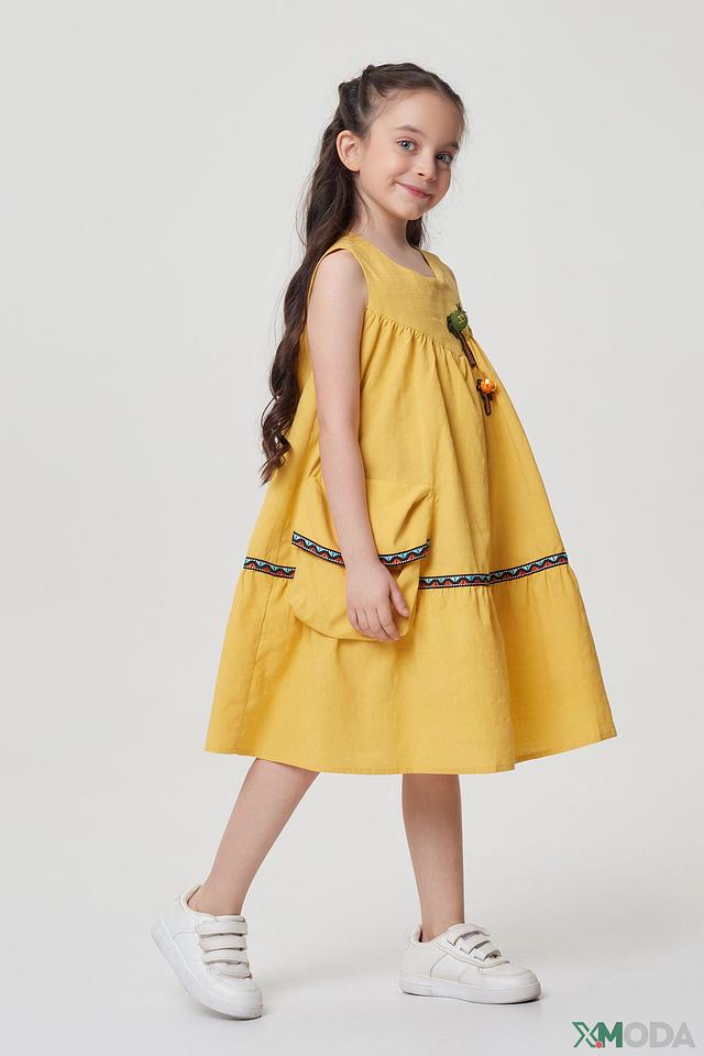 Платье Choupette для девочки, горчичного цвета, с яркой вышивкой и удобными карманами. Модель выполнена из натурального хлопка, обеспечивающего комфорт и свободу движений. Состав: хлопок 100%