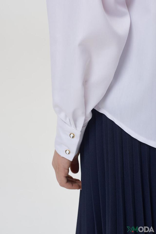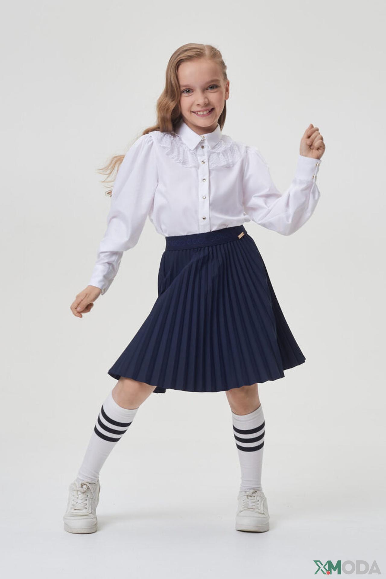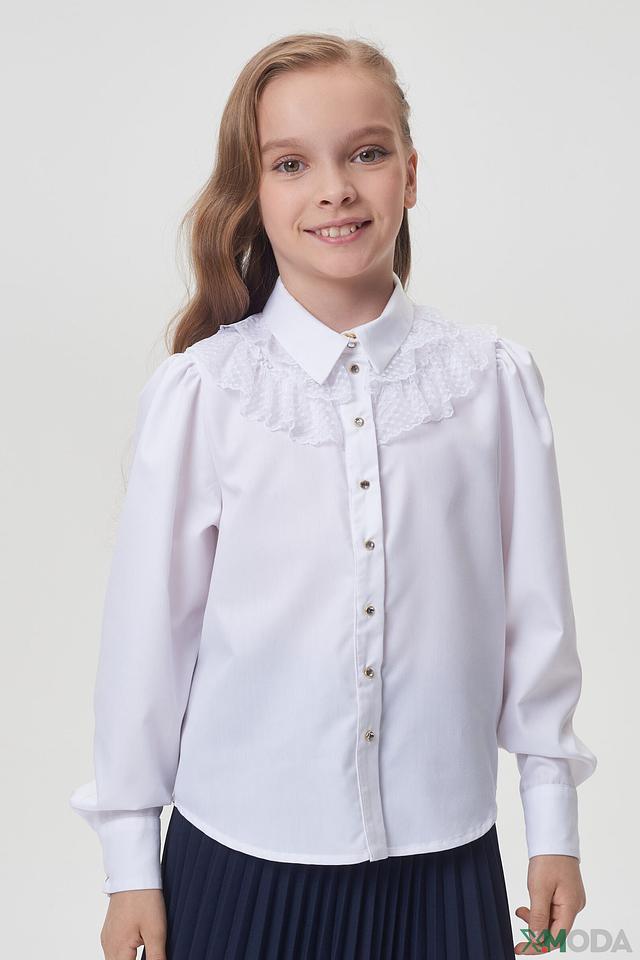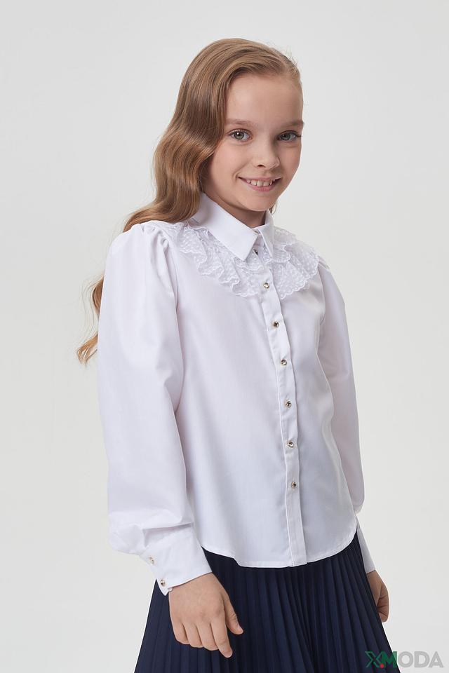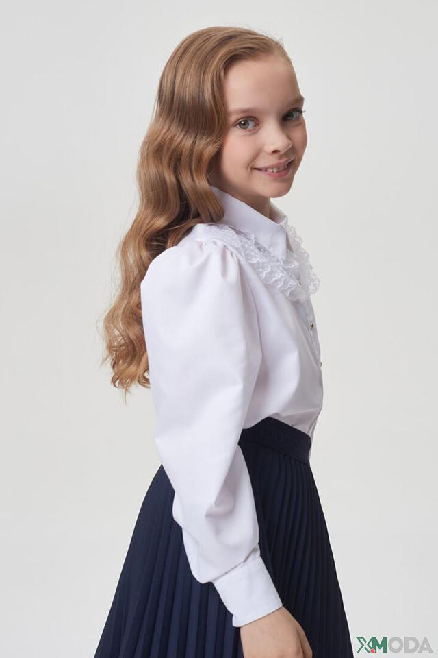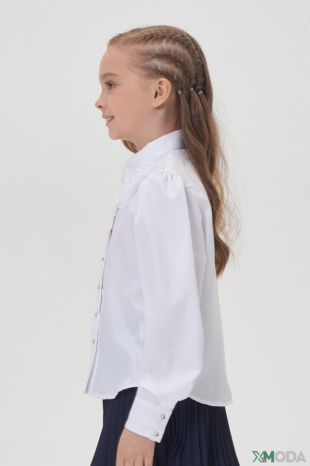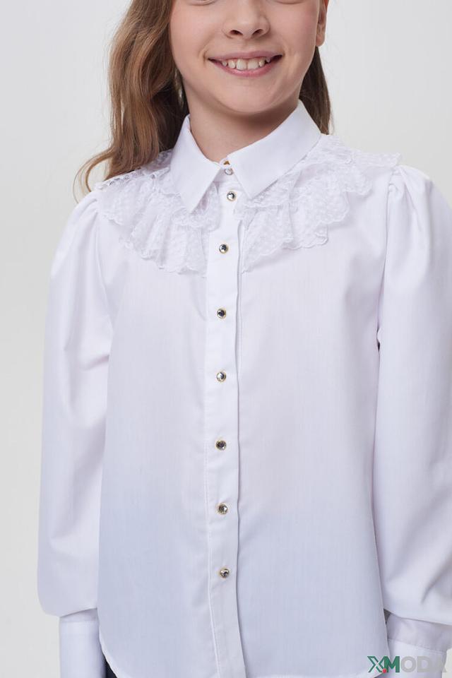 Блузка украшена нежным кружевом, что добавляет ей элегантности и очарования. Золотистые пуговицы придают изысканность и делают образ завершенным. Классический крой и утонченные детали делают эту блузу незаменимой вещью в гардеробе юной леди.