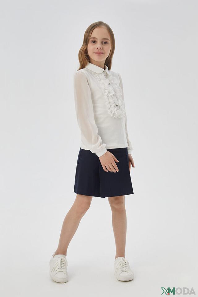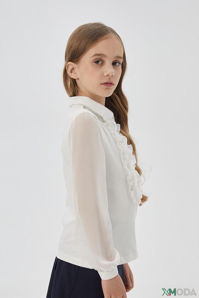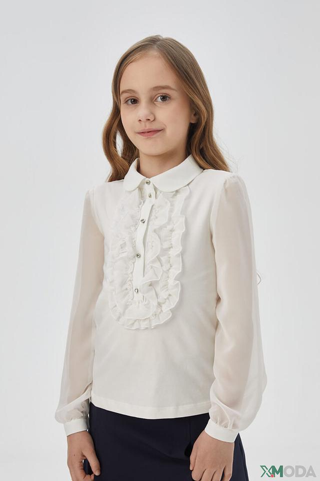 - Изысканный дизайн. Декоративные вертикальные сборки и блестящие стразы на пуговицах делают эту школьную блузку нарядной, подчеркивая классический стиль и добавляя праздничности.