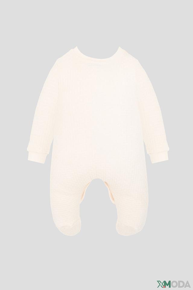Комбинезон выполнен из 100% хлопка, что делает его приятным на ощупь и безопасным для нежной кожи ребенка. Текстурированная поверхность ткани придает изделию особый шарм. Застежка-кнопка на плече обеспечивает удобство одевания и раздевания.