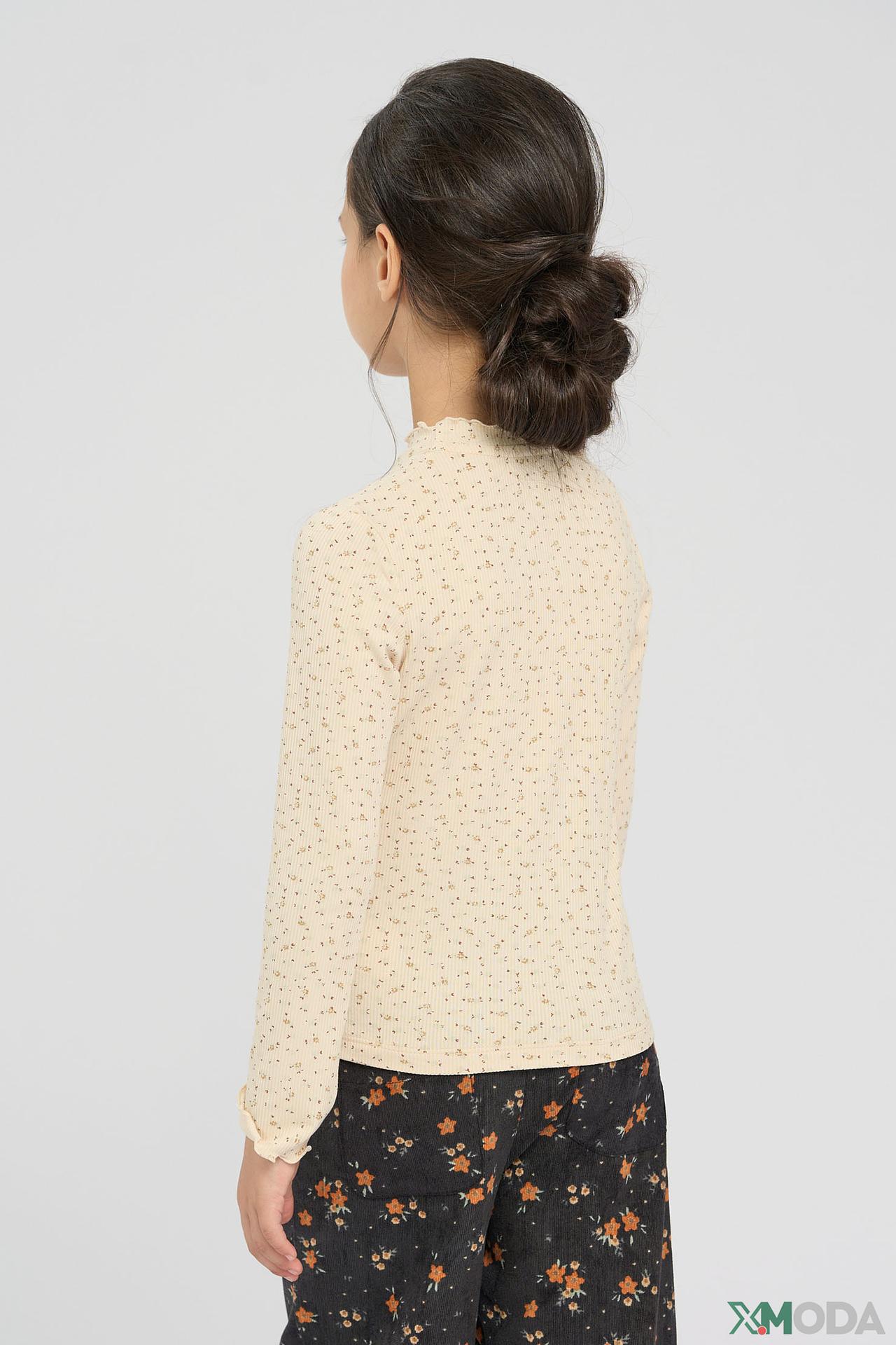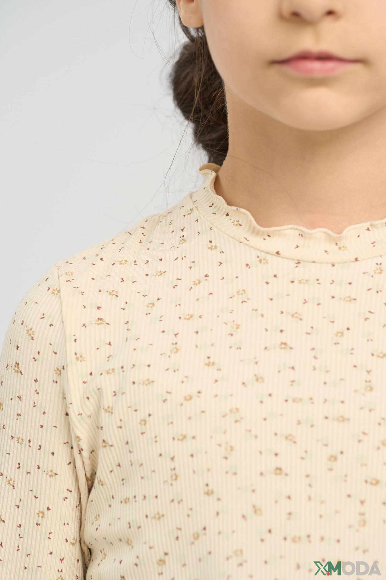 - Стильный дизайн: Бежевый цвет в мелкий цветочный принт создает нежный и свежий образ. Элегантный воротник-стойка с воланами и манжеты добавляют изделию очарования и уникальности.