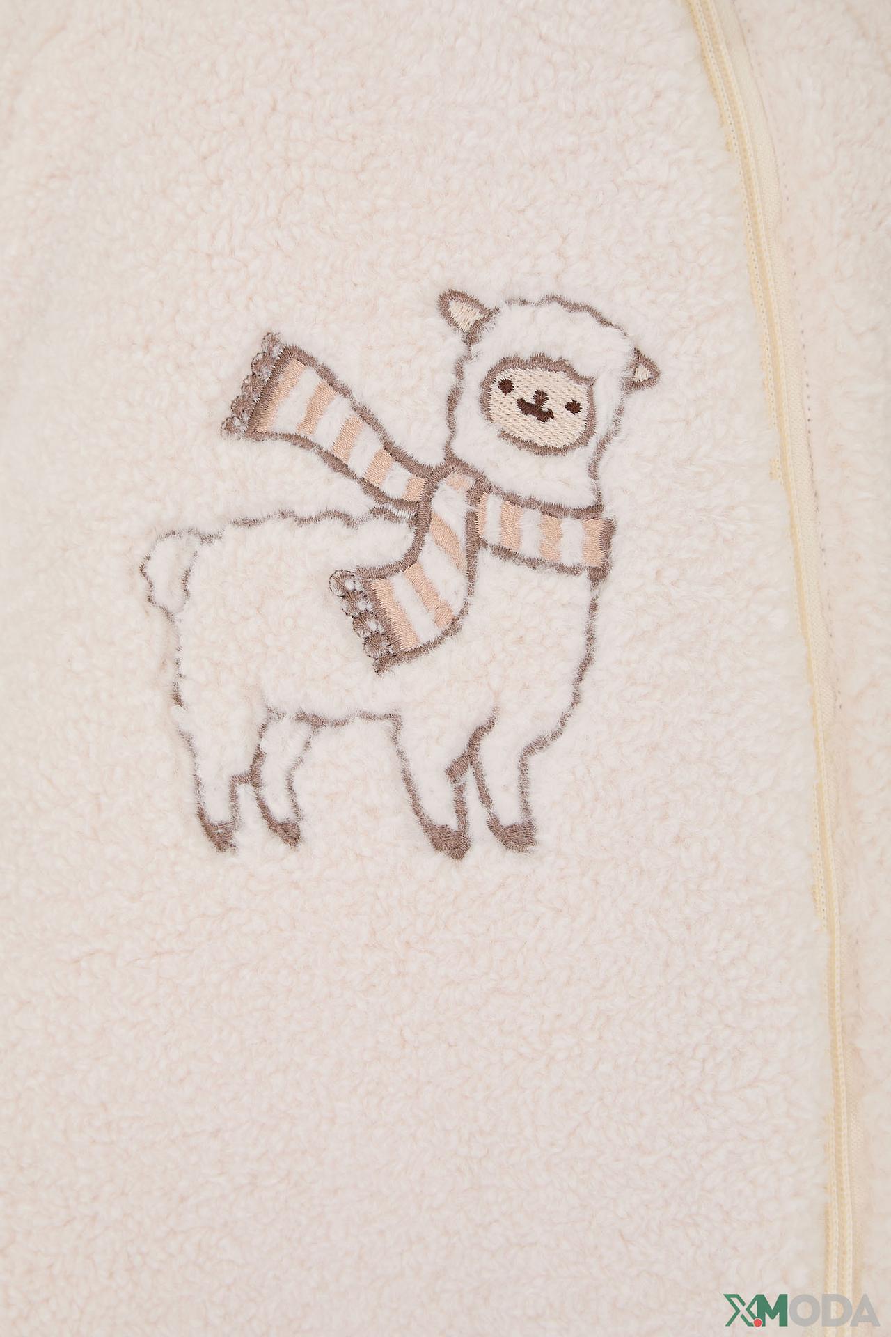 - Очаровательный декор: Изделие украшает милая вышивка с изображением ламы в шарфе, которая придаёт комбинезону особую индивидуальность и шарм.