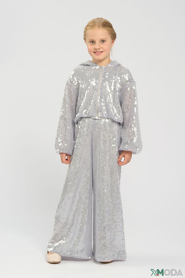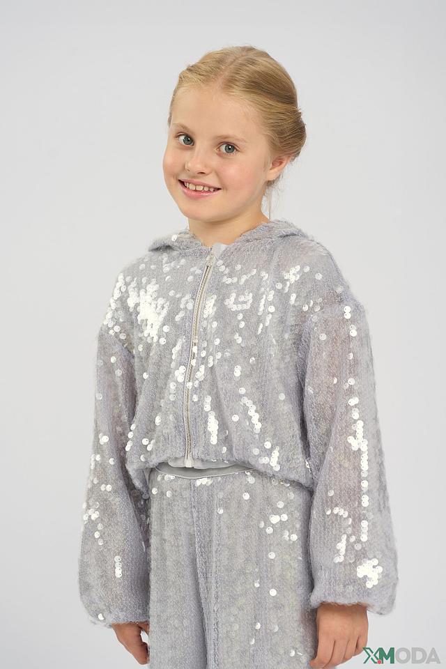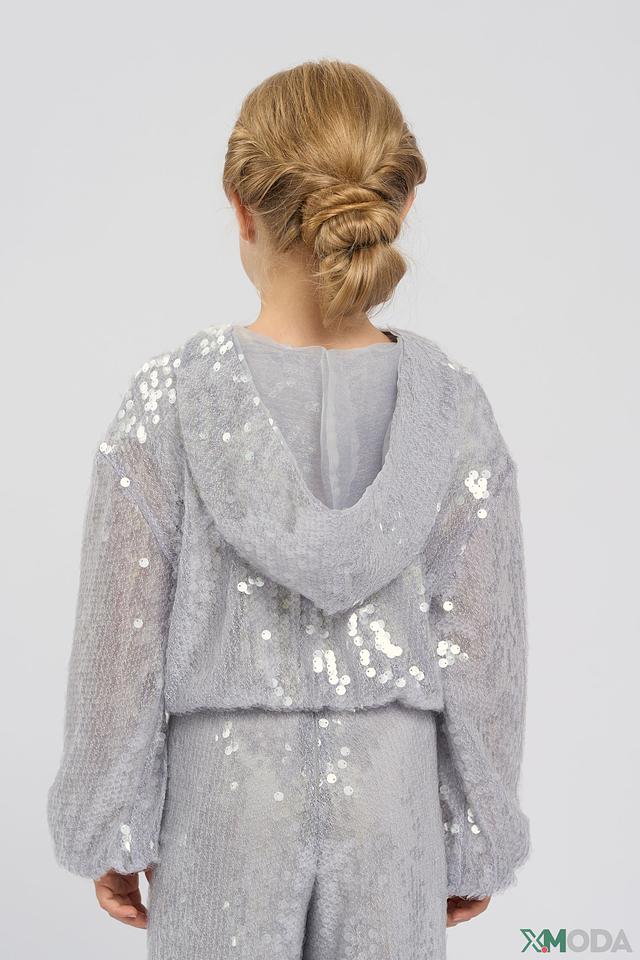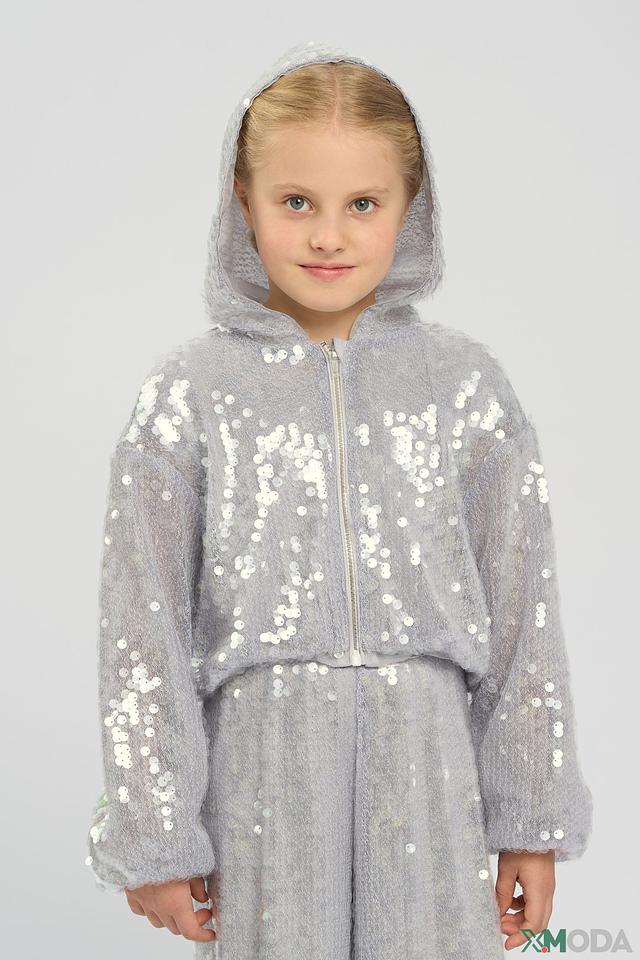 Стильный жакет Choupette для девочки, серебристого цвета, полностью расшит пайетками и имеет удобный капюшон. Идеальный выбор для особых случаев и создания яркого образа. Состав: полиэстер 100%, Состав_подкладка модал 95%, Состав_подкладка полиуретан 5%