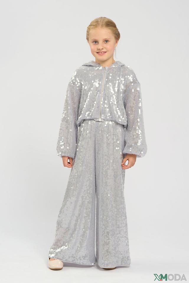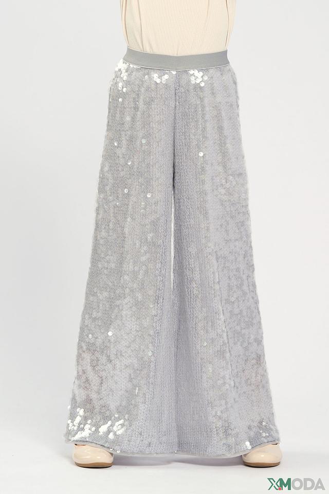 Стильные брюки от Choupette серебристого цвета, полностью расшитые пайетками, станут ярким дополнением к образу юной модницы. Модель отличается широким кроем и удобной посадкой. Состав: полиэстер 100%, Состав_подкладка модал 95%, Состав_подкладка полиуретан 5%