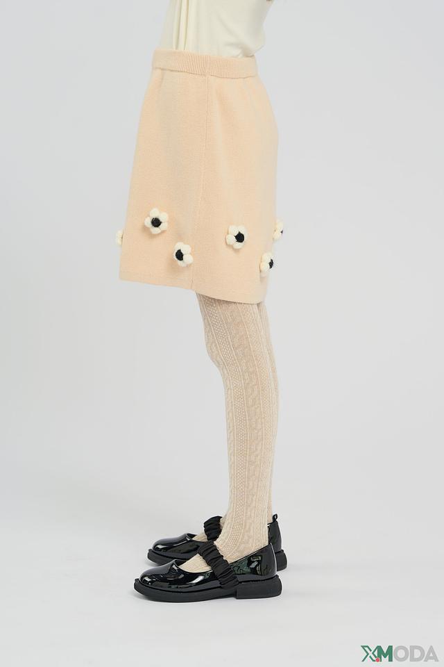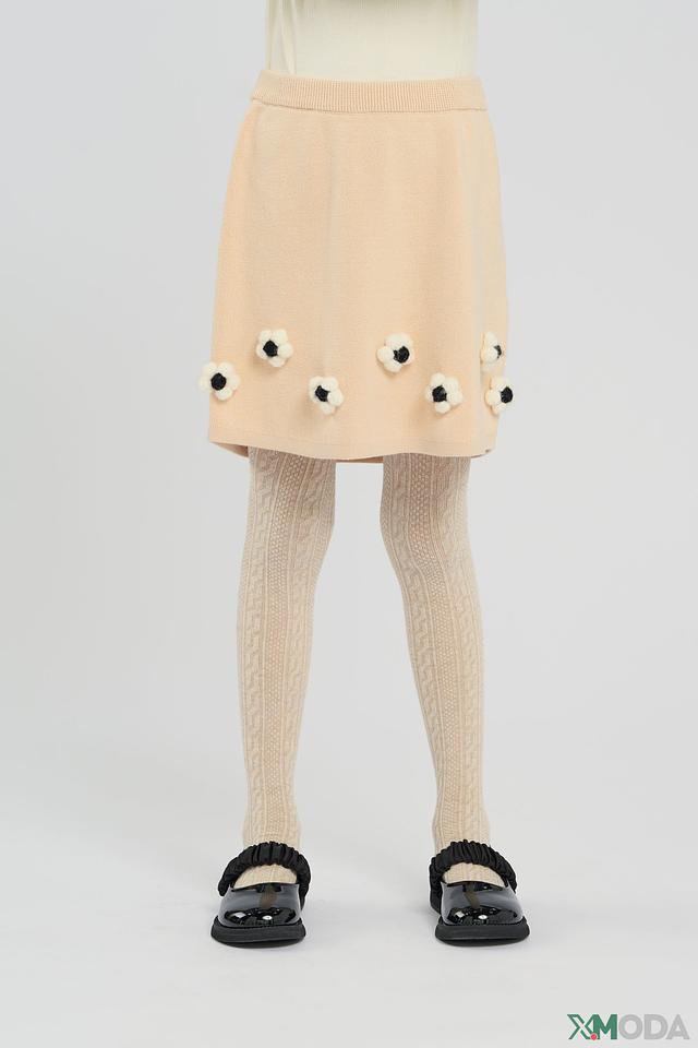 Юбка имеет удобный эластичный пояс, обеспечивающий комфортную посадку. Оригинальный декор в виде объёмных цветов придает образу игривость и неповторимость.